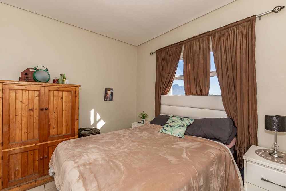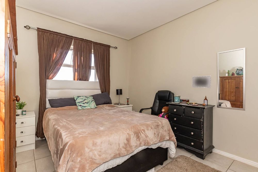The main bedroom boasts built-in cupboards and tiled flooring, providing a low-maintenance and modern finish. The fully fitted bathroom is neatly tiled and includes a shower, toilet, and basin.