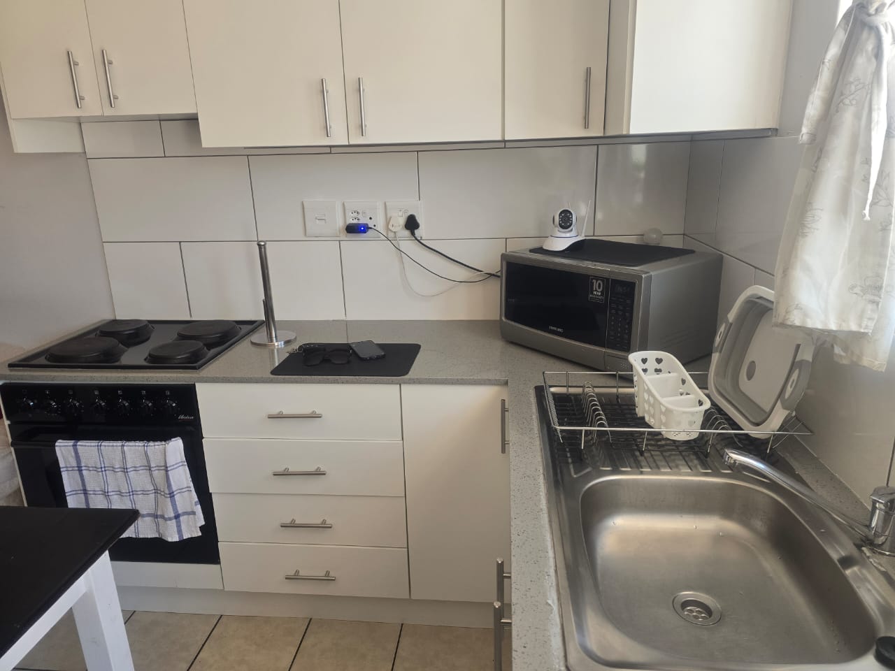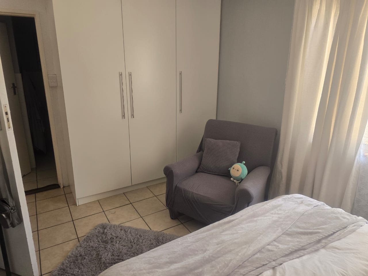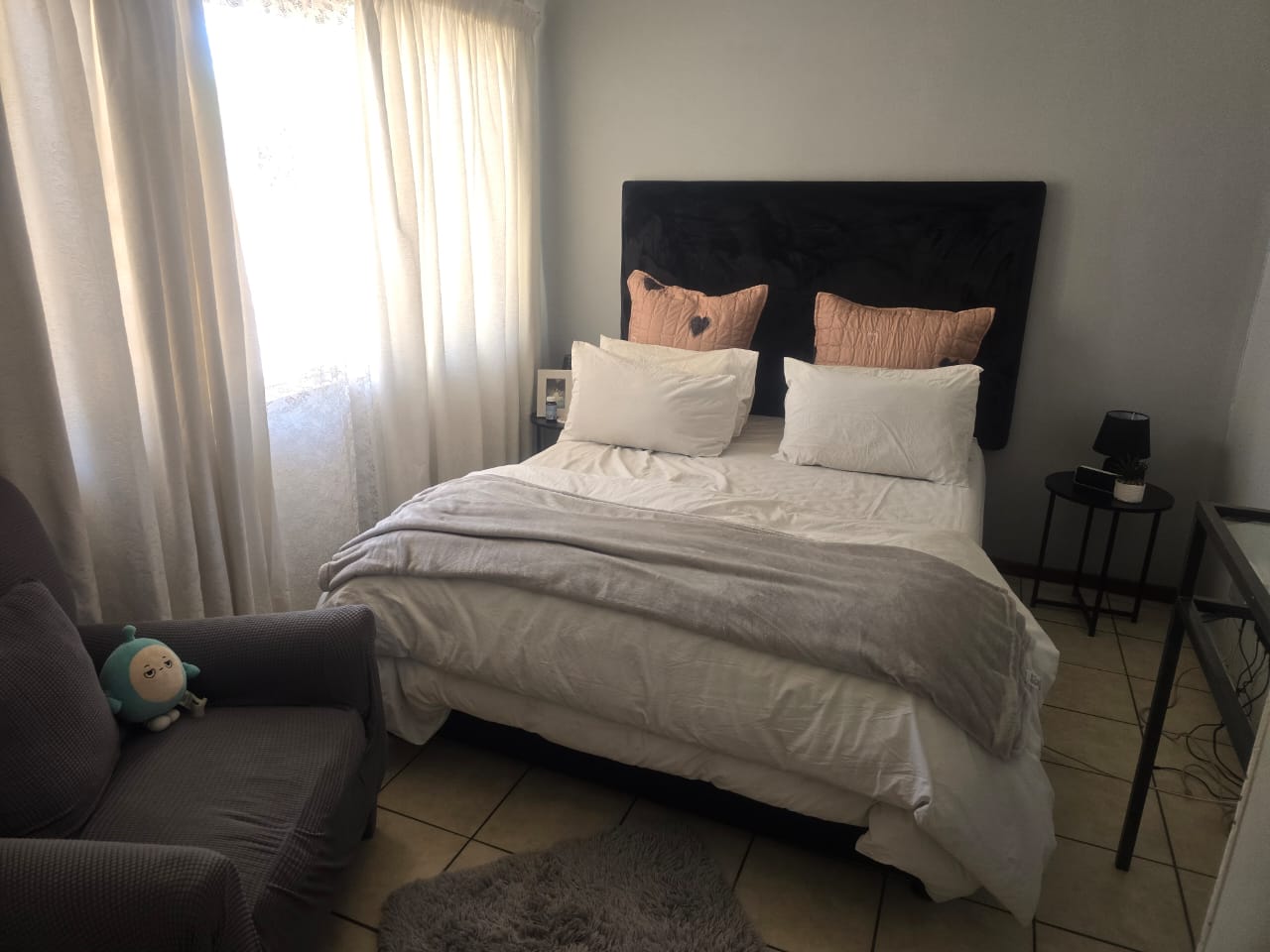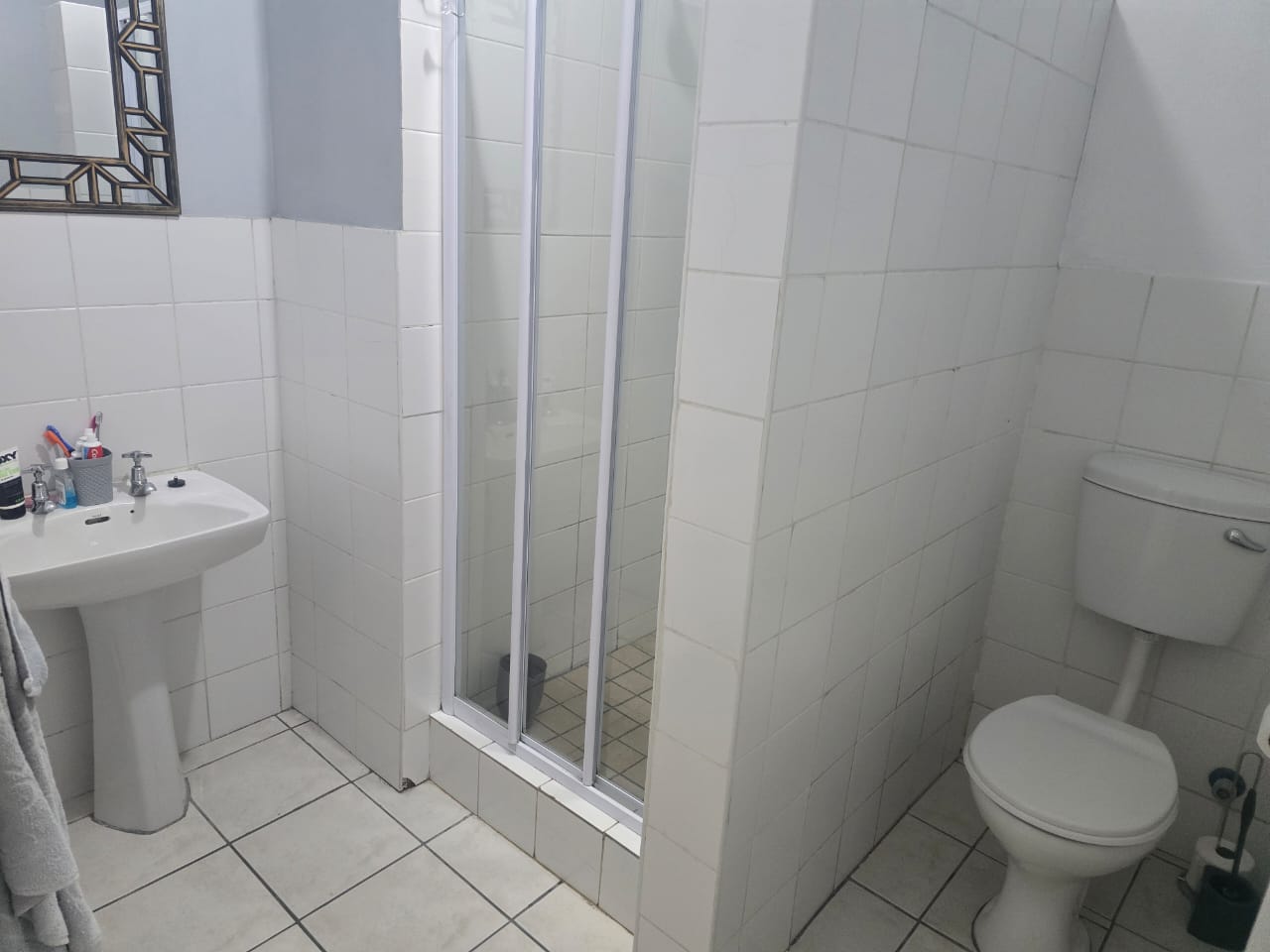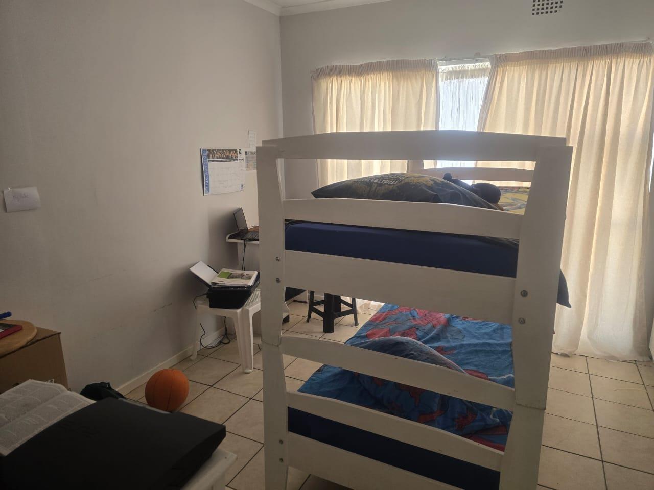 This building was a guesthouse and has been developed into 5 apartments. This apartment is at the back of the property. It offers an open-plan kitchen/lounge area with a washing point for a washing machine and space for a single-door fridge. There is a guest bathroom with a shower, basin, and toilet. The main bedroom has an ensuite shower, basin, and toilet. The main bedroom has built-in cupboards and tiled floors. This property is close to Panorama Hospital and shopping centers. No pets, no smoking inside the unit. One parking bay behind the automated gate. Prepaid electricity and prepaid water