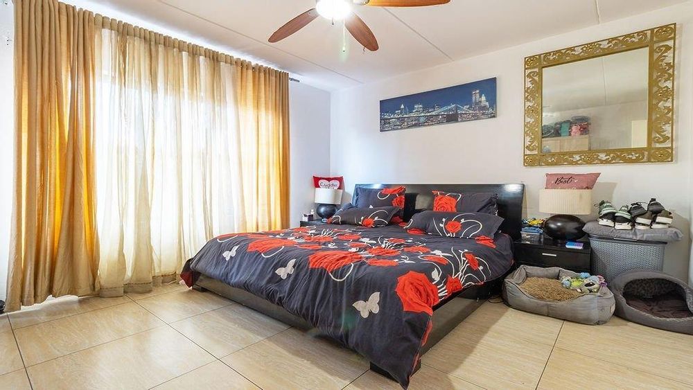 Upon walking into the property you are greeted by an open-plan kitchen with a breakfast nook and built-in cupboards and appliance space. The open living room walks out onto an enclosed entertainment area which is another great feature of the unit. There are two large bedrooms with tiled floors and built-in cupboards. The full bathroom that consists of a shower,bath and a basin is fully tiled.