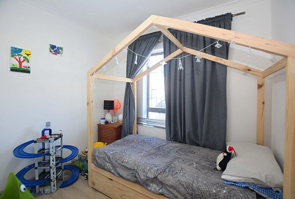 The sunny lounge flows out to the private enclosed, low-maintenance garden through a sliding door.