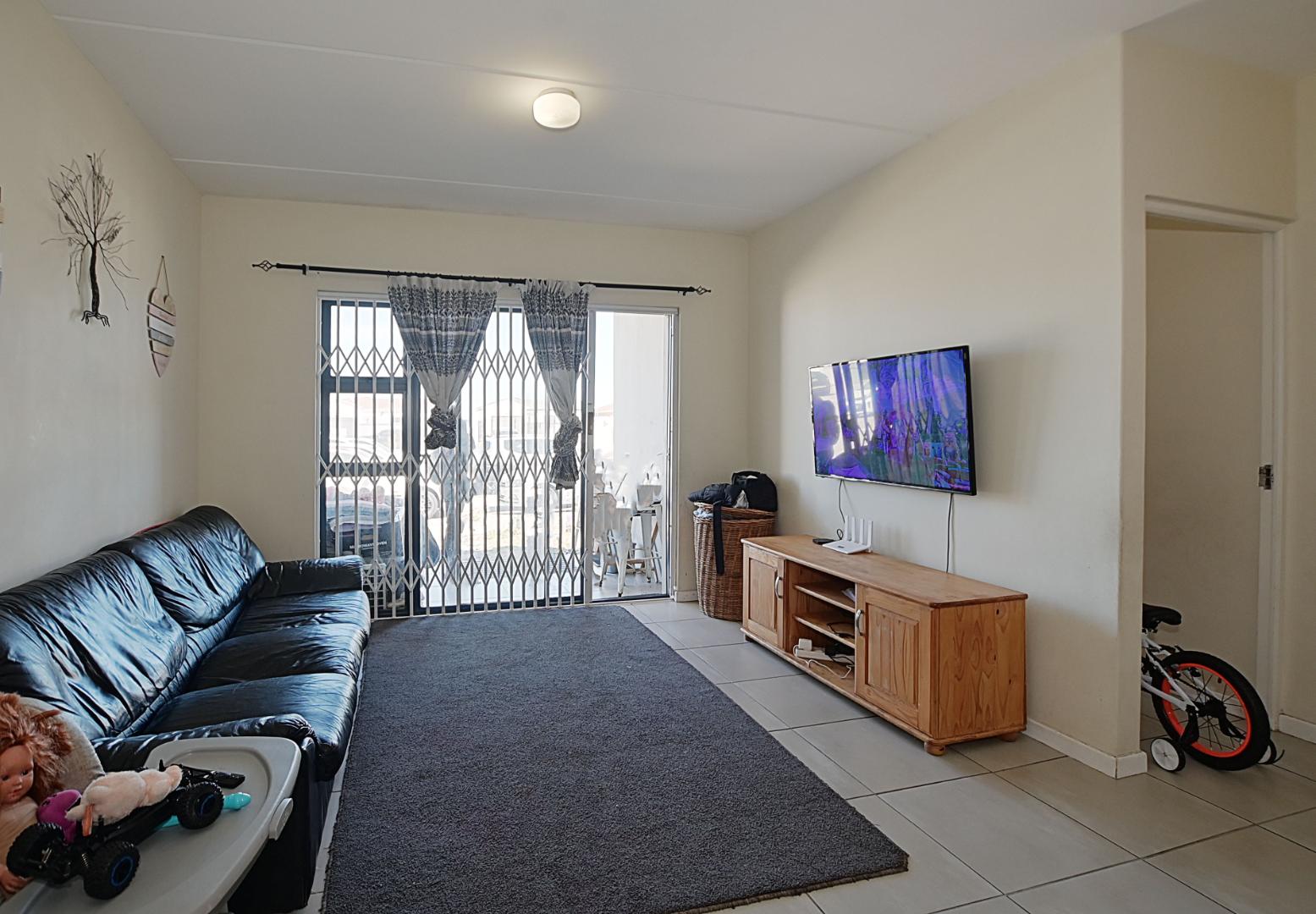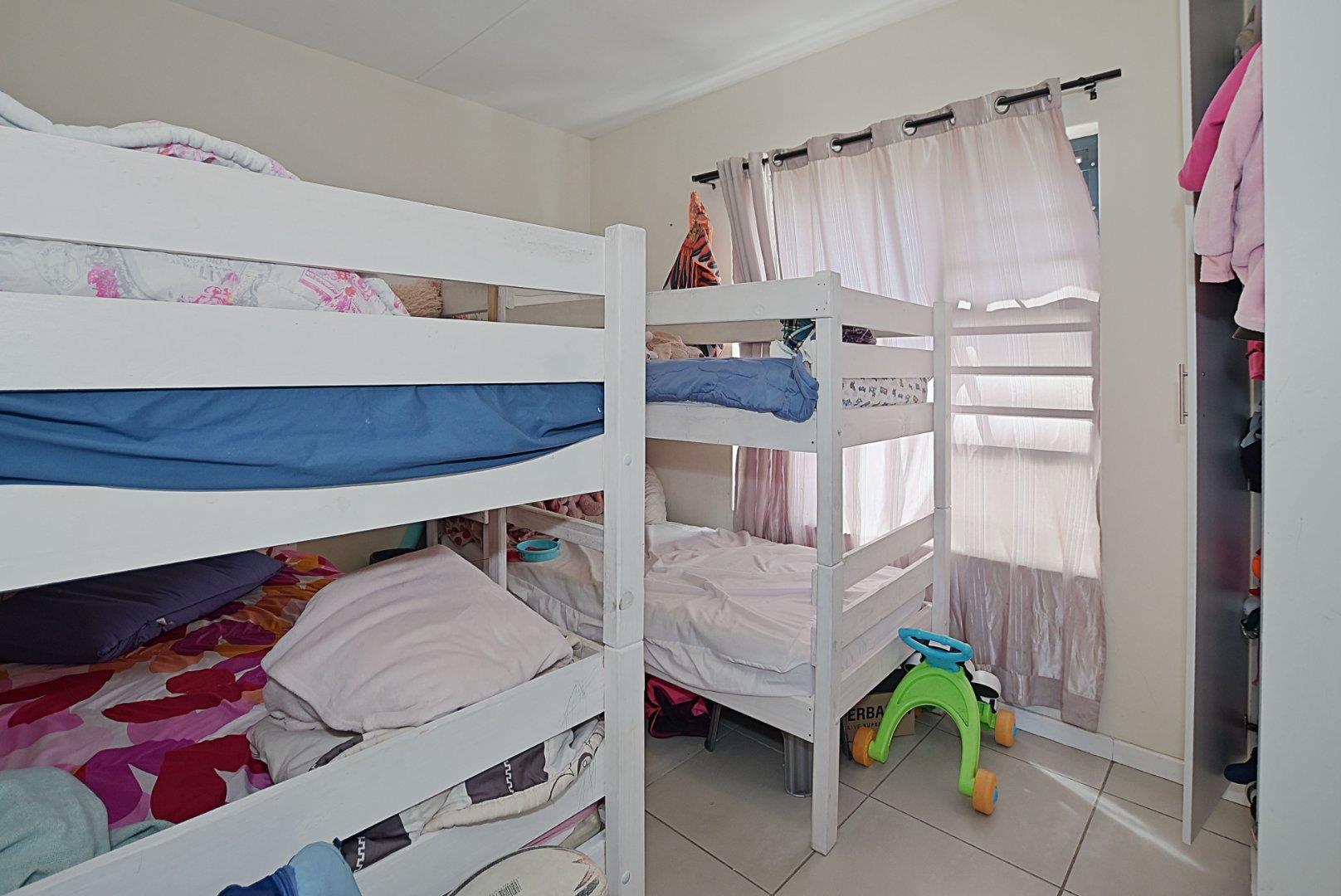 The parking area is in front of the units, with plenty of visitors parking available. An automated security gate with remote control entry and an electric fencing add to peace of mind. There is a play area for kiddies and an enclosed common swimming pool area with braai facilities.