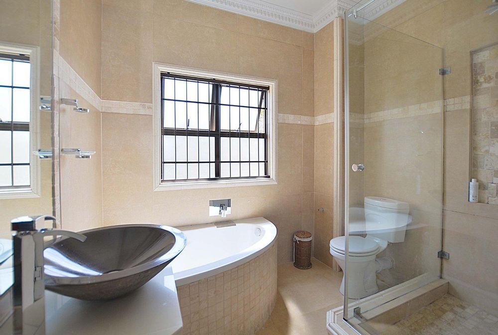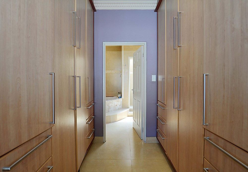 Entertain effortlessly in the elegant dining room with its high ceilings and seamless indoor-outdoor flow, thanks to sliding doors leading to the pool area. The modern kitchen is a chef’s delight, boasting a pantry, scullery, and ample space for three appliances.
