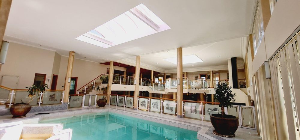 As you step inside, you'll be greeted by high ceilings and awe-inspiring spaces that will leave you breathless. The open-flow design creates a seamless transition between rooms, providing a sense of freedom and abundance. The centrepiece of this home is undoubtedly the indoor swimming pool, which offers a tranquil oasis for relaxation and rejuvenation. Adjacent to the pool, you'll find a sauna, perfect for unwinding after a long day.