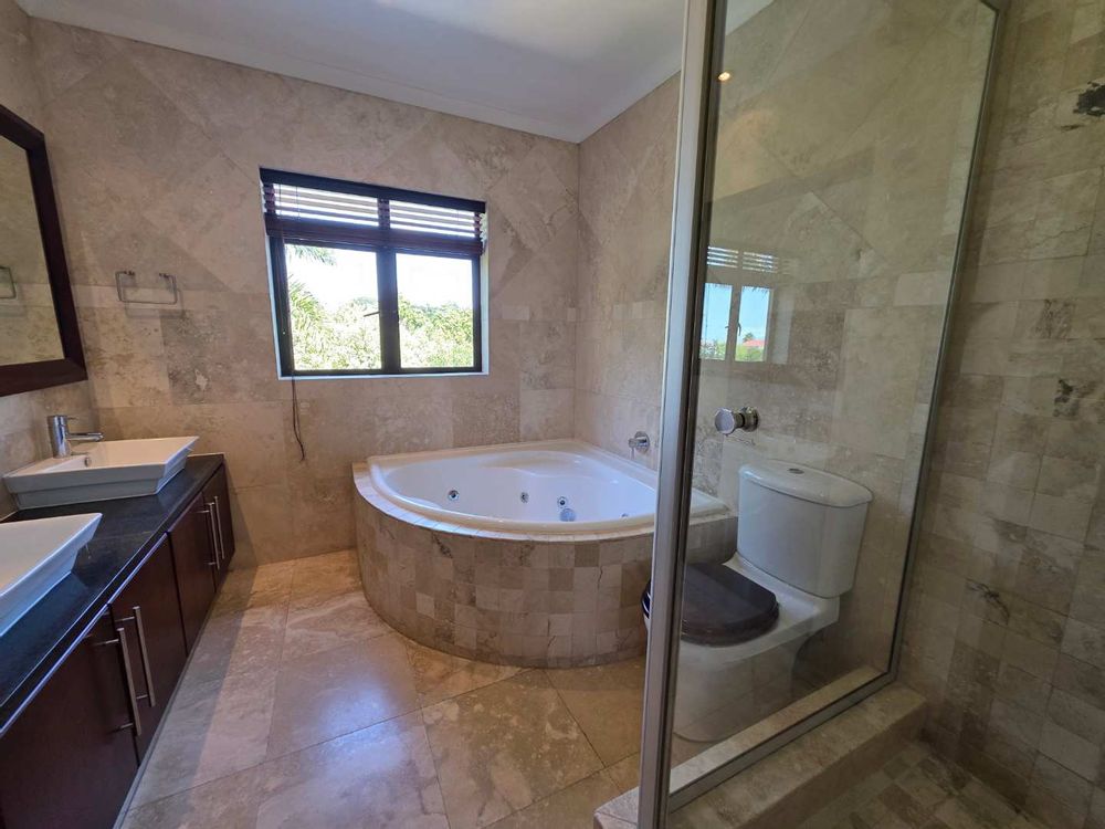 Step inside to find three spacious bedrooms, all with air conditioning and built-in cupboards. The main bedroom opens onto a private balcony with stunning views and features a luxurious en-suite, while the two additional bedrooms share a charming porch and a modern full bathroom. Downstairs, the open-plan living space flows beautifully, featuring a sleek designer kitchen and an indoor gas braai—perfect for entertaining year-round.