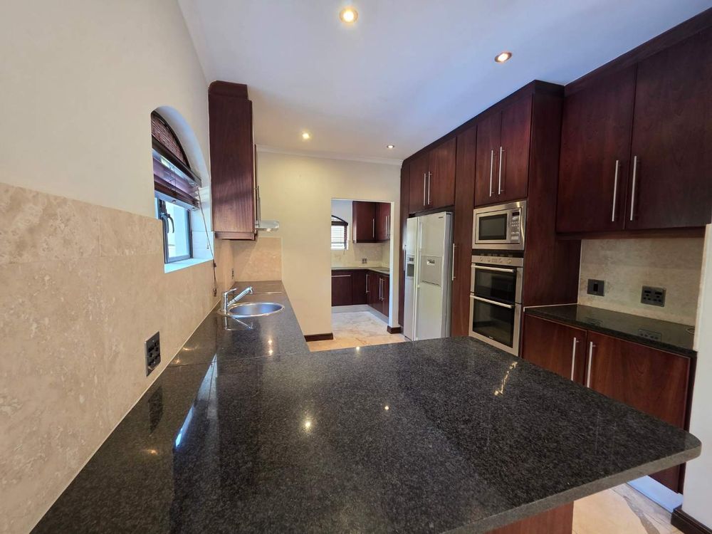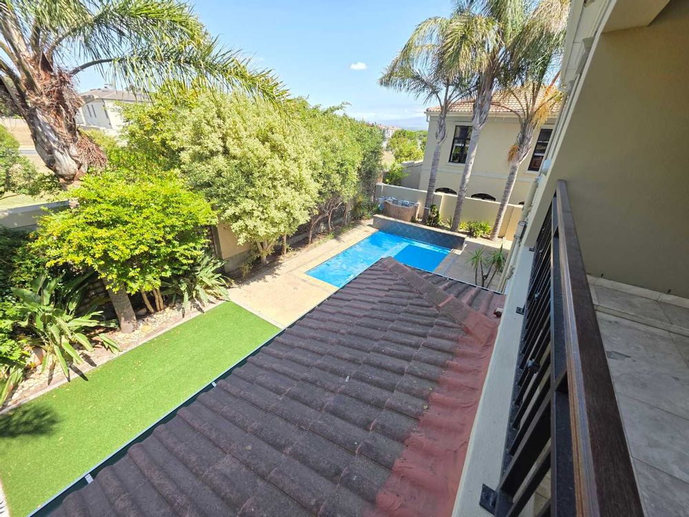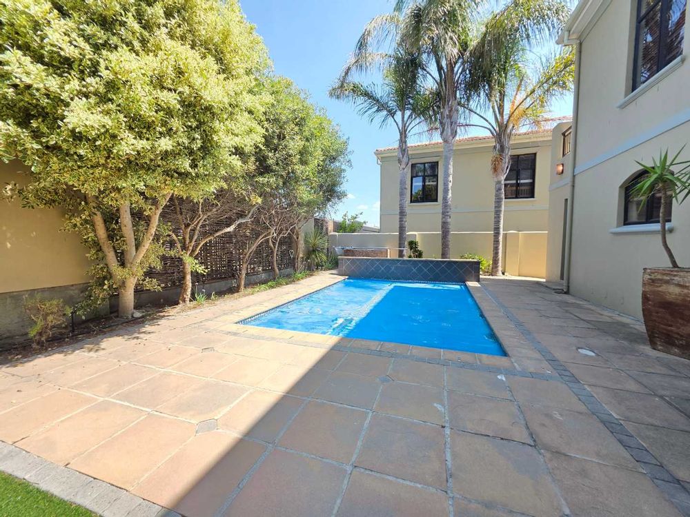 Outside, a low-maintenance artificial lawn surrounds a sparkling swimming pool with a fountain feature, creating a serene outdoor retreat where you can relax and unwind. Located in a secure estate, this home offers peace of mind and a lock-up-and-go lifestyle, making it a fantastic investment in the sought-after Plattekloof area.