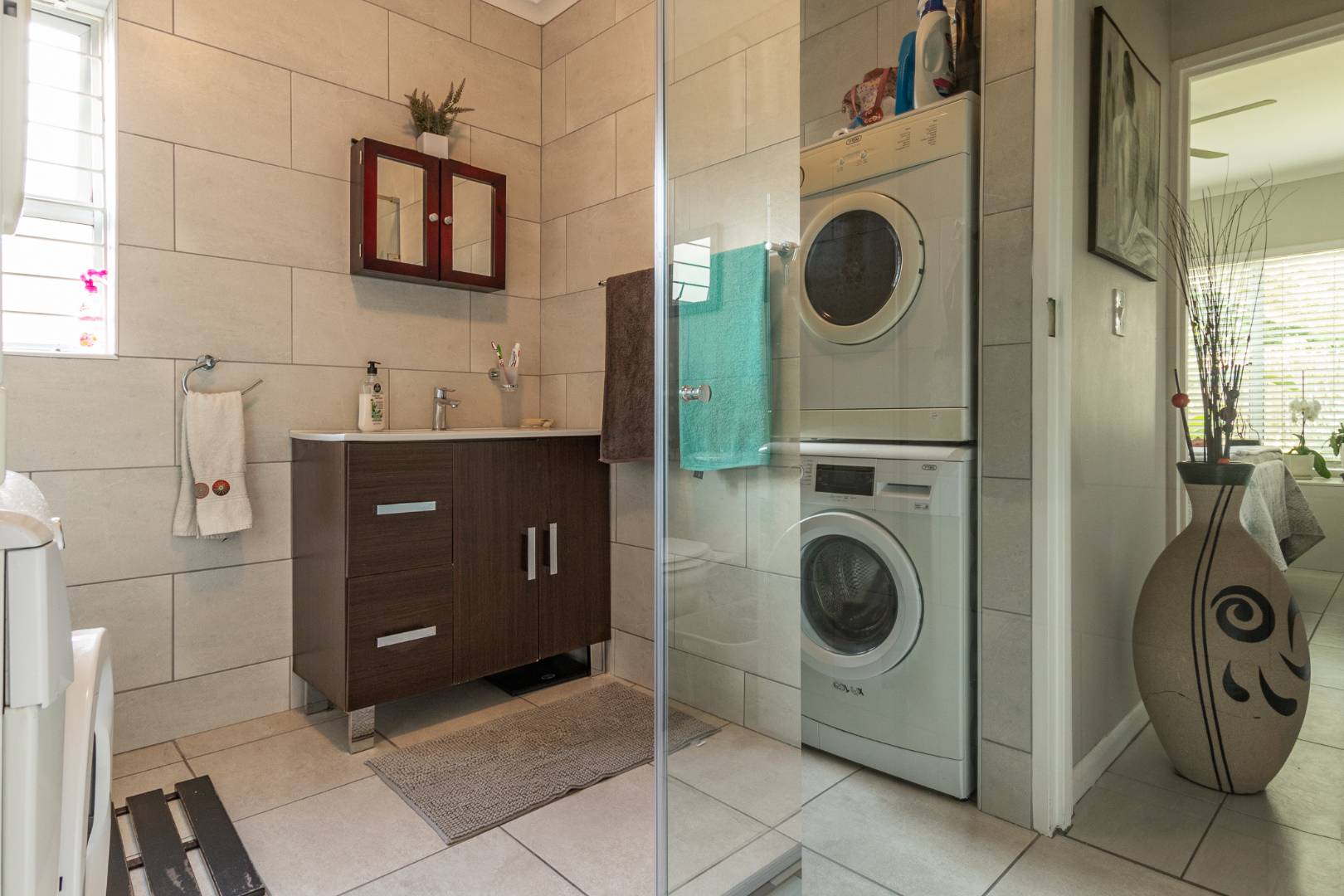 Plumbed for a washing machine in the bathroom