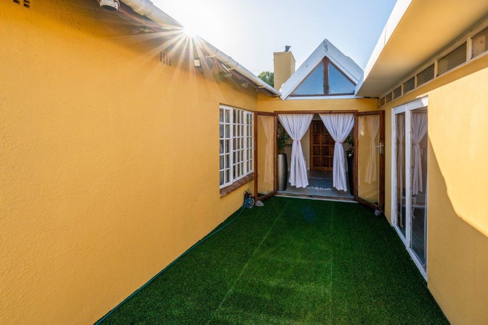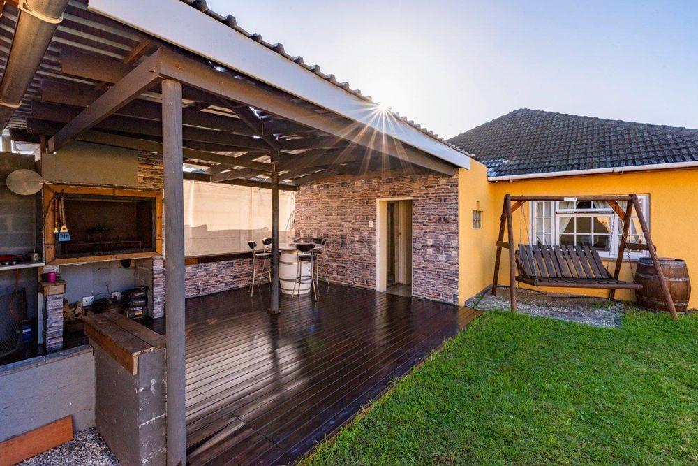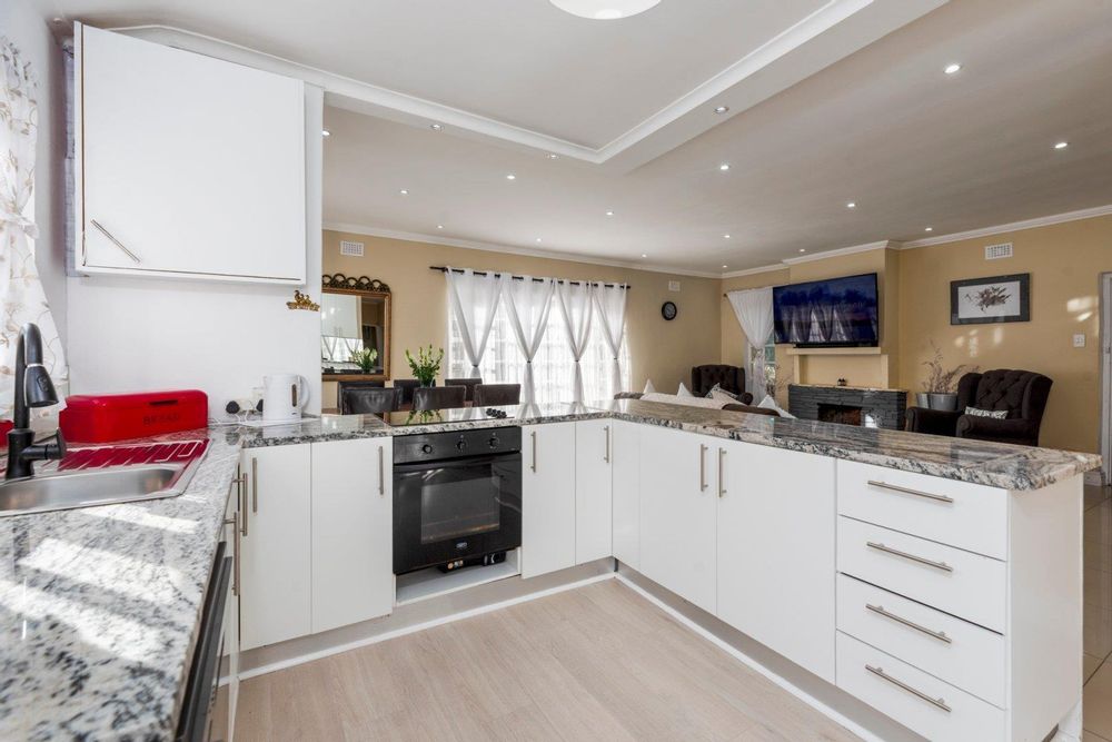 This home boasts four comfortable bedrooms, including a luxurious main bedroom with a spacious ensuite, built-in cupboards, and a dressing room. The additional three bedrooms are serviced by a well-appointed, recently renovated bathroom, and there's also a convenient guest toilet. The open-plan, fully tiled lounge and dining area, complete with a cozy fireplace, create the perfect space for family gatherings and cozy evenings. The open-plan kitchen features built-in cupboards, an electric stove, and an oven. This property offers a seamless flow, with every exit leading you to the entertainment area.