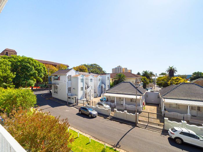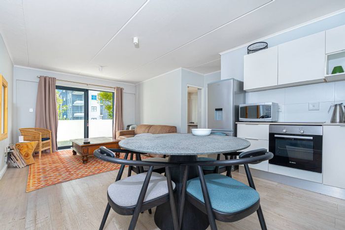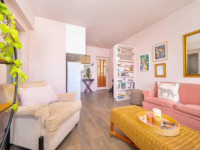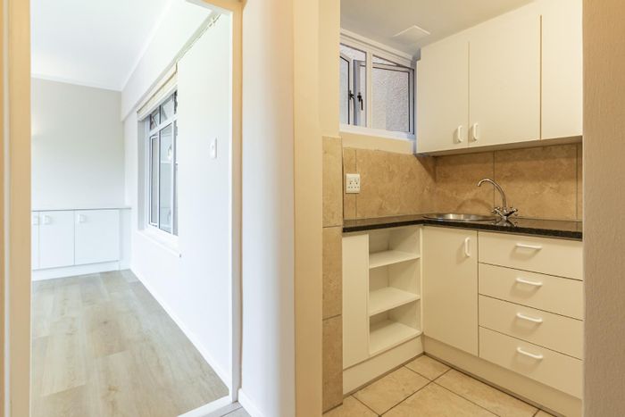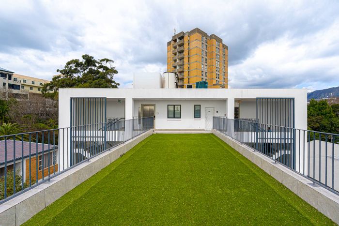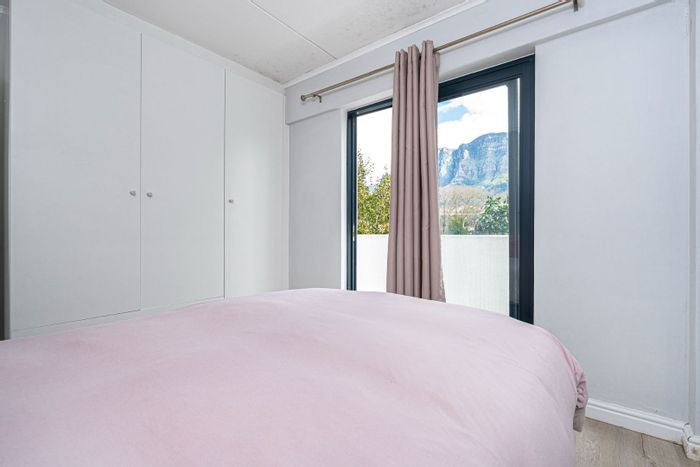 City living with a sunny communal garden, braai and pool in centrally located Grosvenor Square; light open-plan apartment with Juliet balcony and mountain views. One bed, one bath.