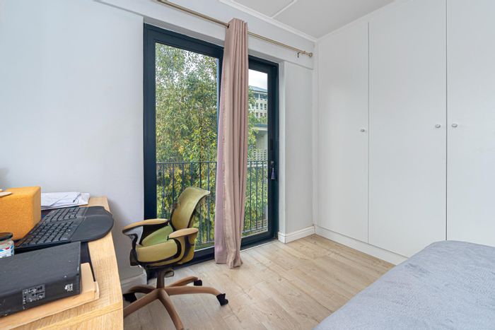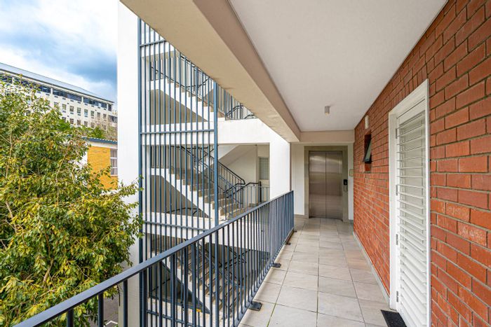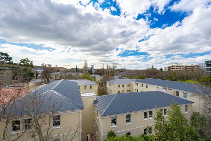 City-edge apartment steps from UCT, Baxter Theatre and Riverside Mall, featuring a spacious lounge with enclosed balcony, resident library and lounges, 24-hour security, fibre, one bed, bath, automated garage.