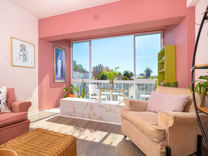 Urban convenience on Main Road — walk to UCT, Baxter Theatre and Riverside Mall. Bright studio with enclosed balcony, communal library, 24-hour security and garage parking.