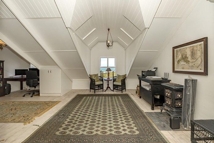 Seaside sanctuary above Simon’s Town with sweeping bay views, sunny patio under a grape-covered pergola, versatile loft studio and open fireplace—classic two-bedroom, two-bath cottage.