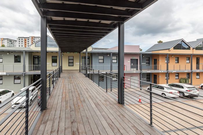 Enjoy lock-up-and-go estate living with Table Mountain sunsets in Burgundy Estate, near Century City and beaches; light-filled open-plan living with outdoor braai, two beds, one bath.