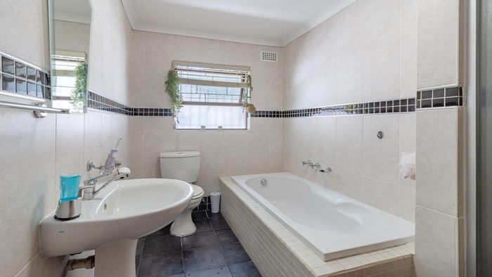 Relaxed family living in prime Tokai with leafy streets and easy access to nature reserves. Covered patio overlooking swimming pool, cozy fireplace, main bedroom with en-suite and dressing room.