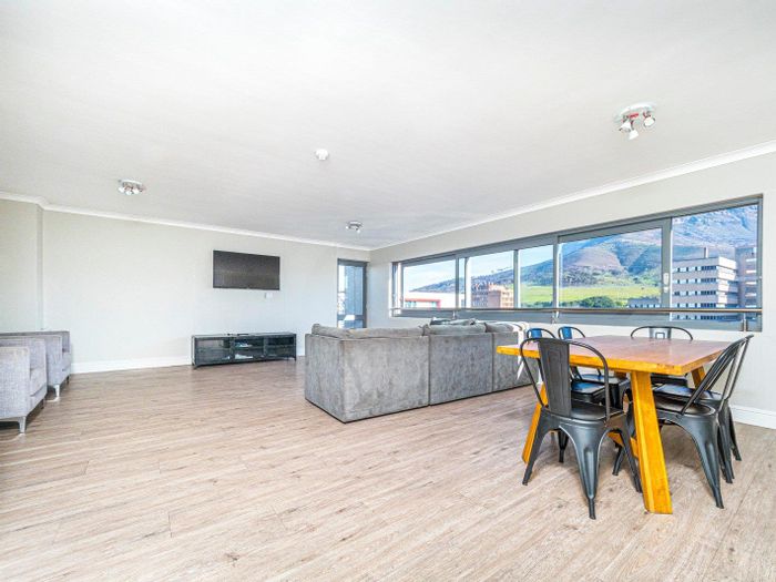 Enjoy vibrant city-centre living with panoramic Table Mountain, harbour and sea views; rooftop pool, gym and restaurants, fully furnished — two bedrooms, two baths and double garage.