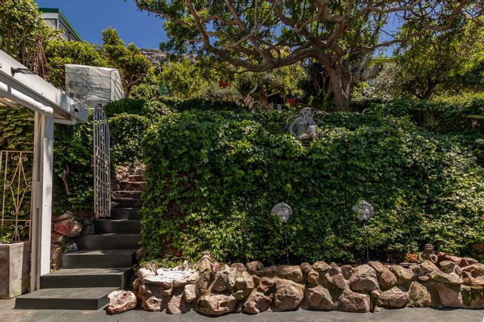 Coastal retreat with income potential in False Bay, offering relaxed seaside living, a fairytale terraced garden with sculpted lion-head fountain, and a self-contained flatlet.