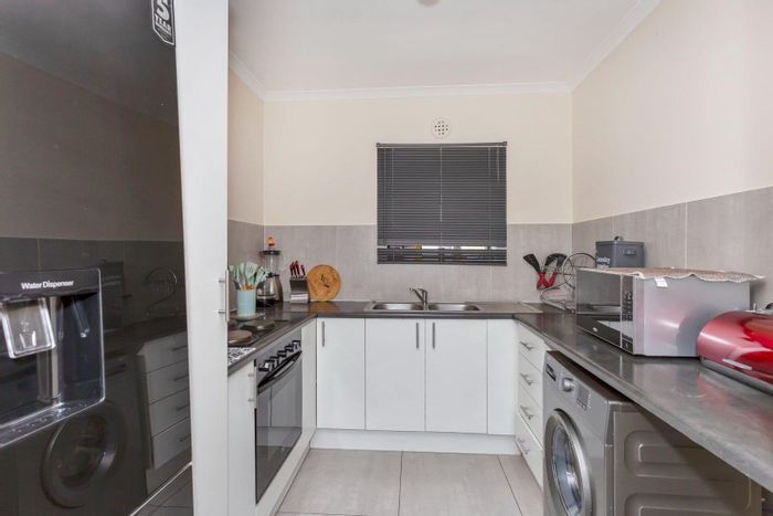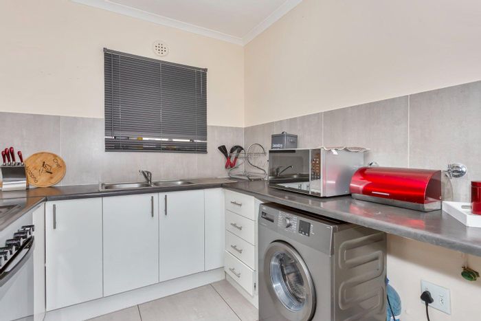 Light-filled, low-maintenance two-bedroom second-floor apartment in a quiet low-density complex (36 units), featuring an open-plan kitchen, built-in cupboards/wardrobes, tiled interiors and a bathroom with rainfall shower over bath. Street parking.