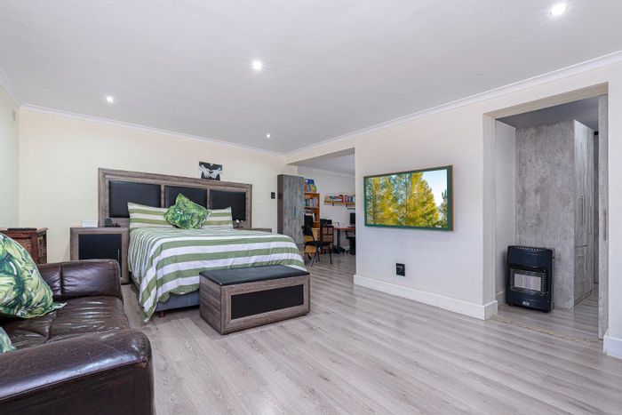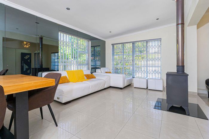 Relaxed family living in prime Tokai with leafy streets and easy access to nature reserves. Covered patio overlooking swimming pool, cozy fireplace, main bedroom with en-suite and dressing room.
