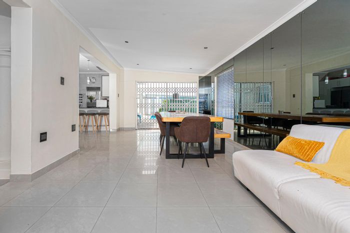Entertainer's dream in sought-after Rondebosch East, with open-plan living flowing to an expansive gunite pool framed by mountain views. Includes five bedrooms, five bathrooms, double garage.