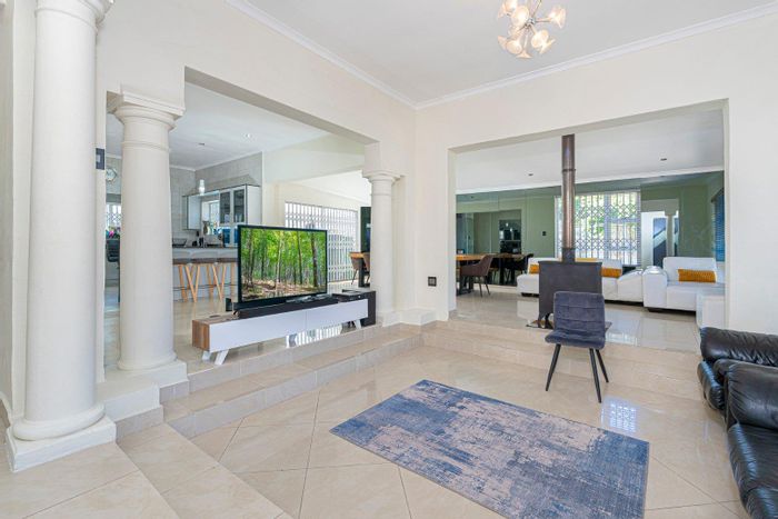 Relaxed cul-de-sac lifestyle with seamless indoor-outdoor flow and poolside entertaining. Close to eateries, schools and Jan Smuts/Race Course roads; four bedrooms, three garages.