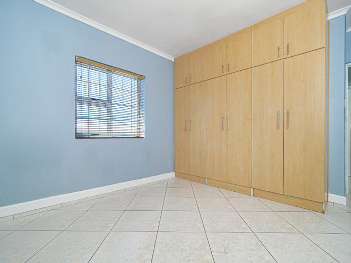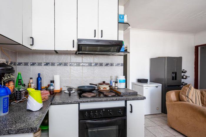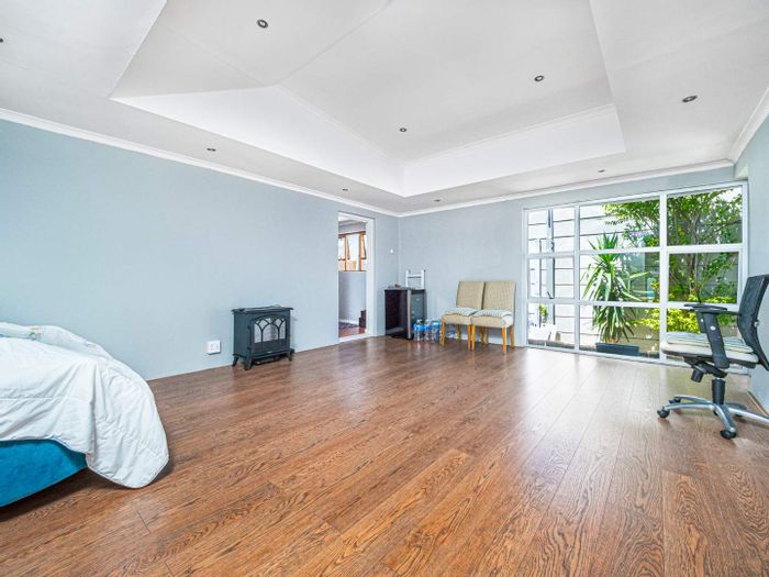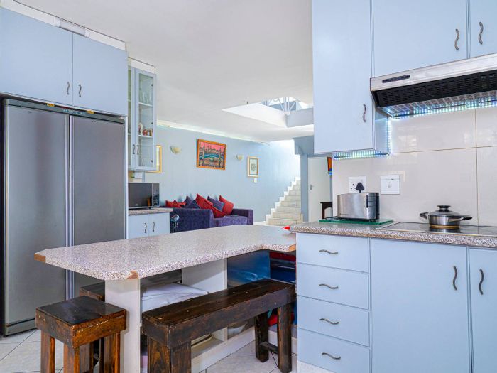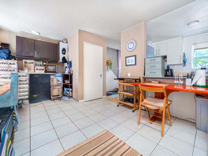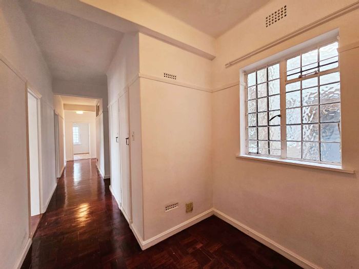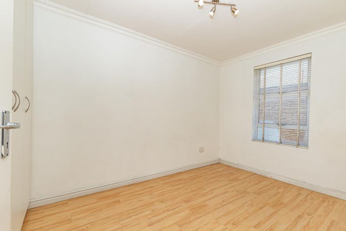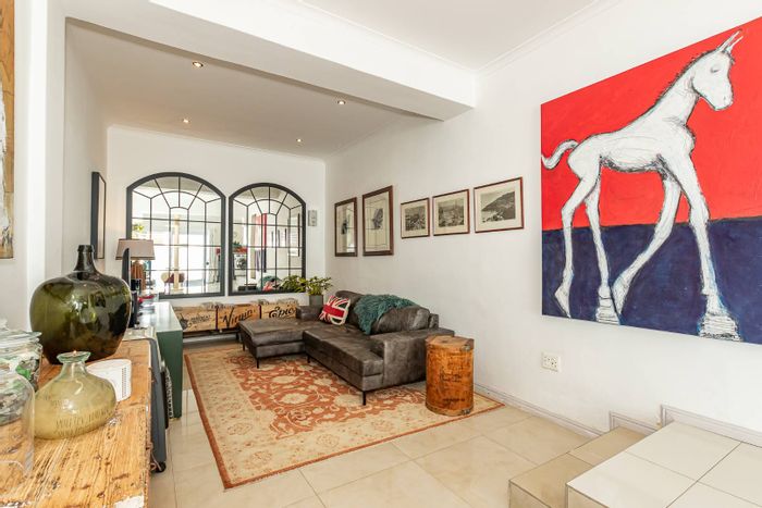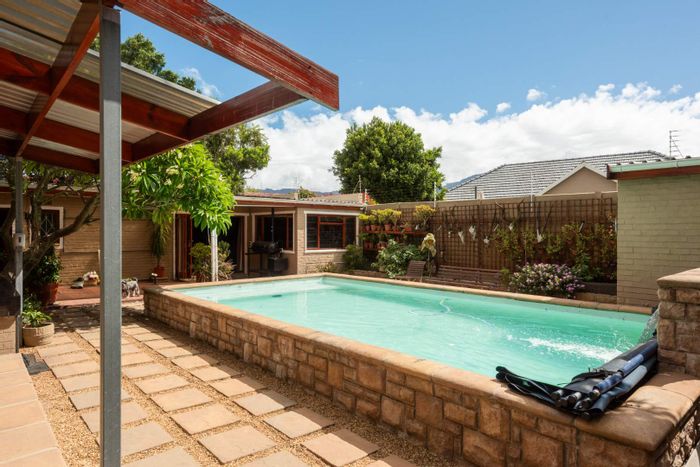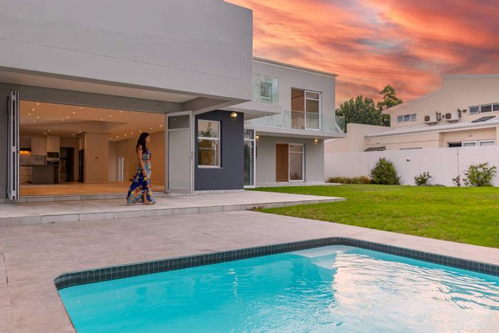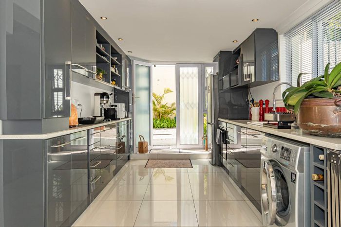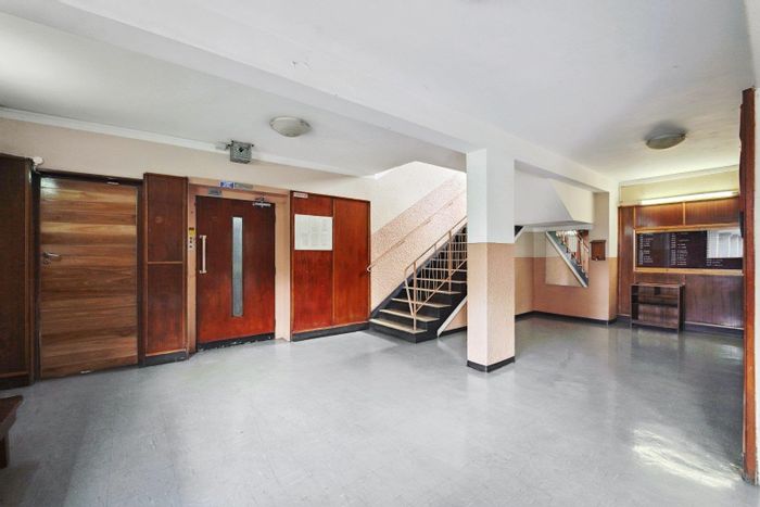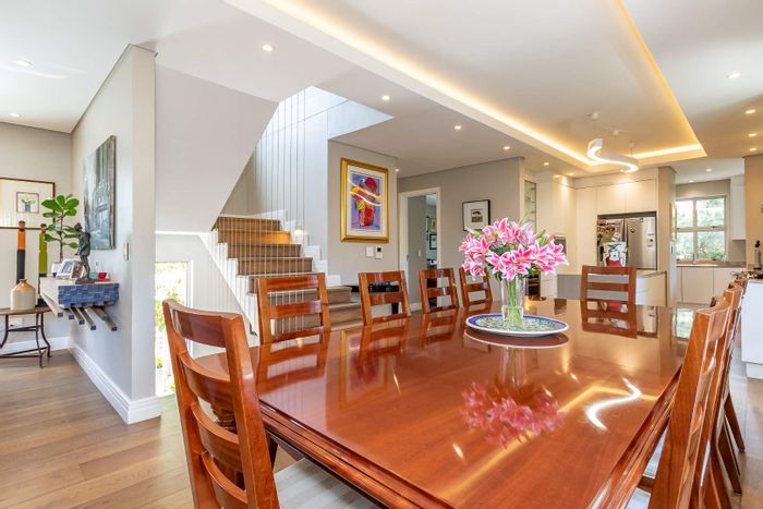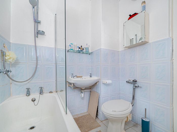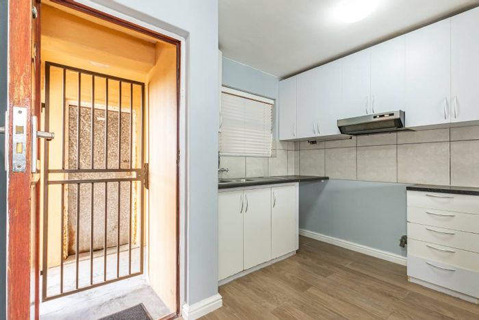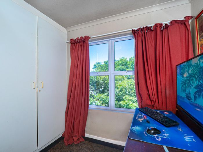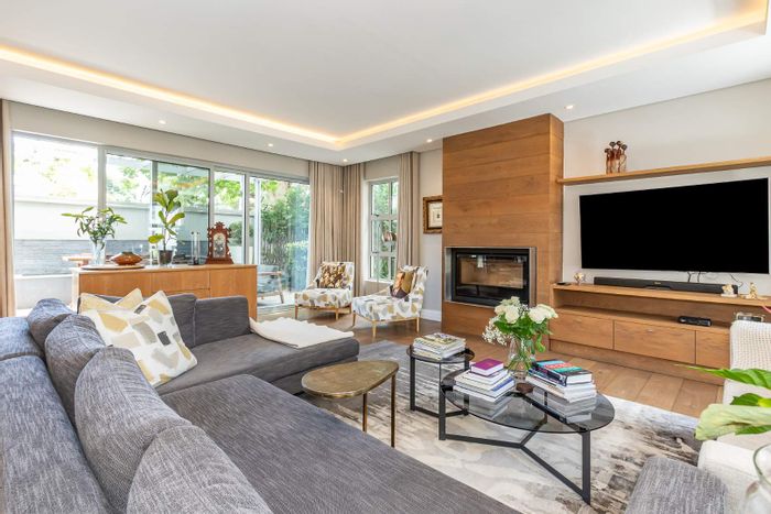 Morning-lit east-facing apartment with patio views of the Hottentot Holland Mountains in Claremont, open-plan living with American shutters, pool, gym and biometric access. 2 beds, 1.5 baths, 2 parking.