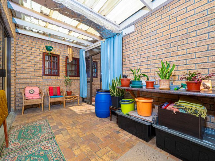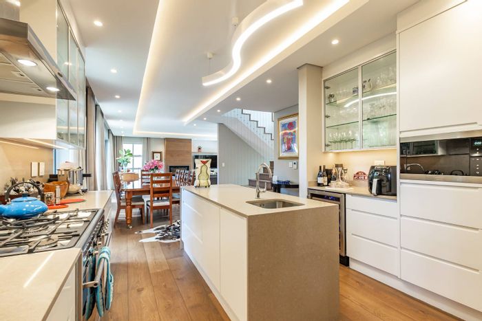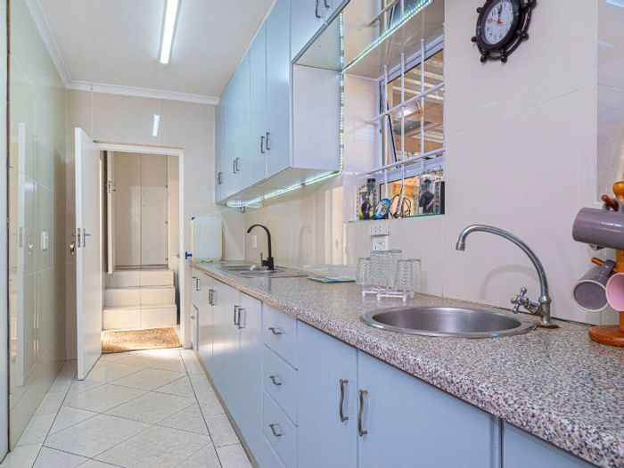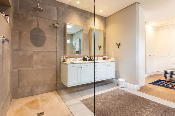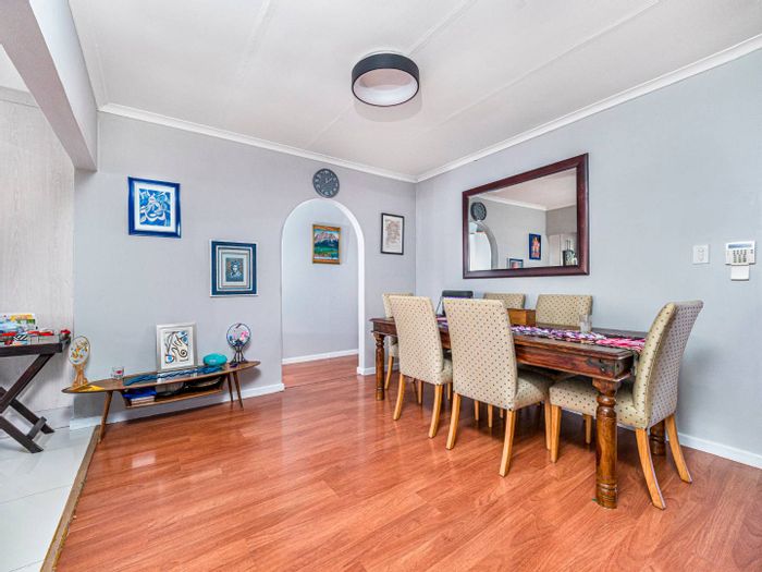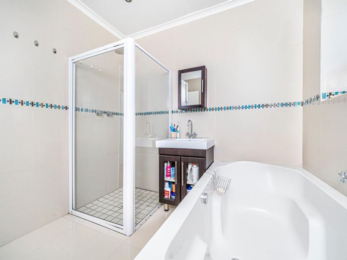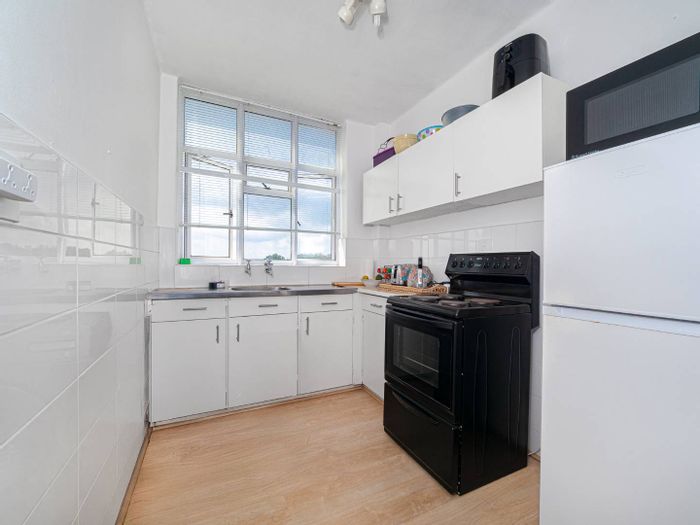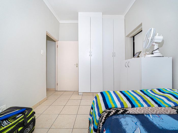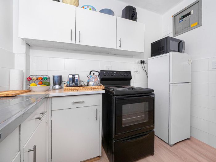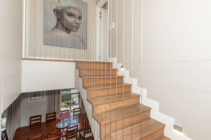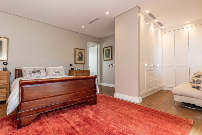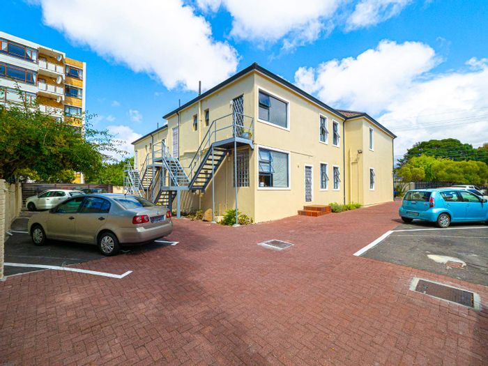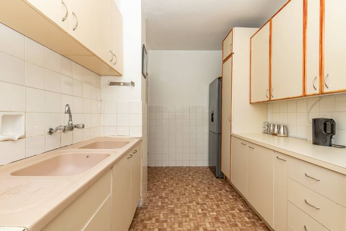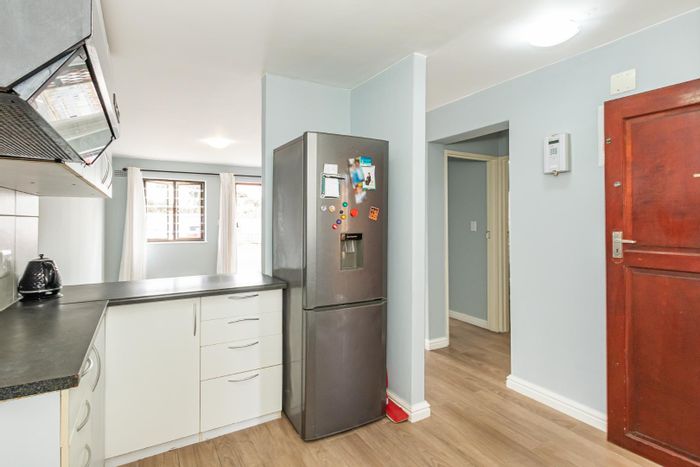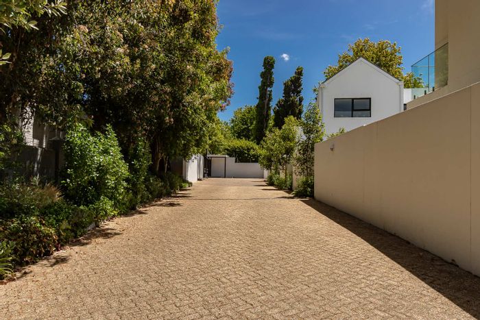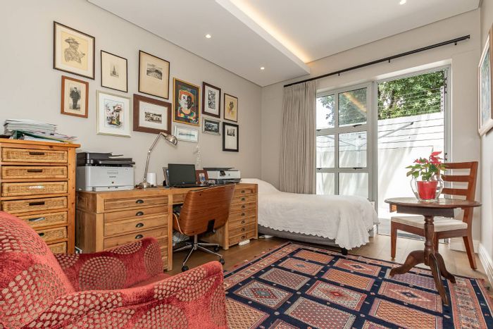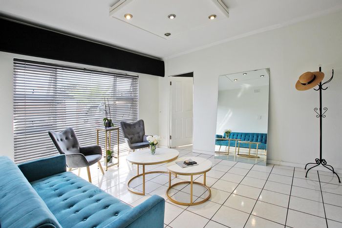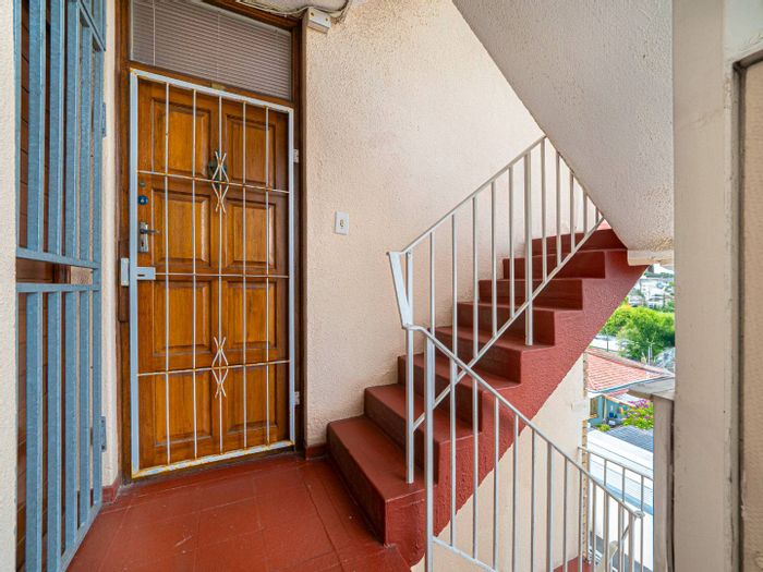 Morning-lit east-facing apartment with patio views of the Hottentot Holland Mountains in Claremont, open-plan living with American shutters, pool, gym and biometric access. 2 beds, 1.5 baths, 2 parking.