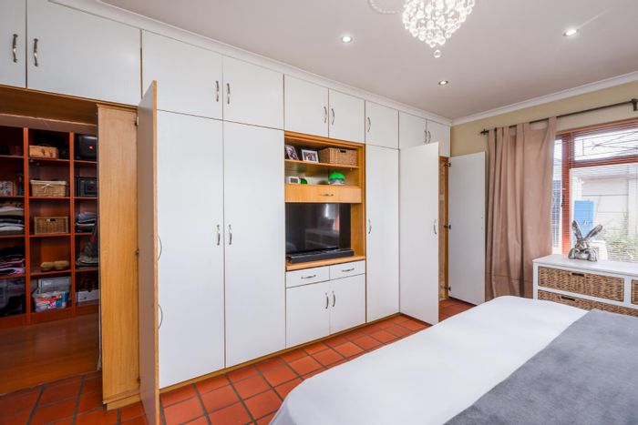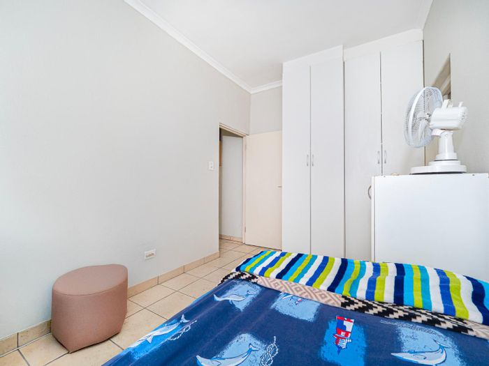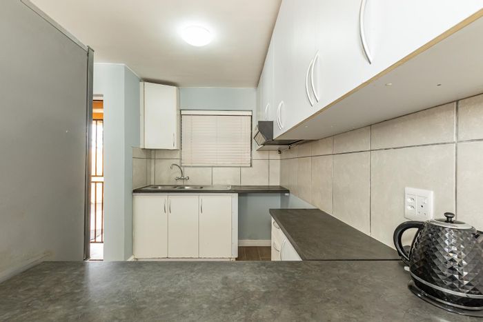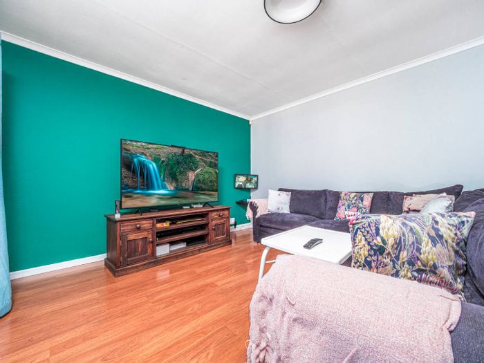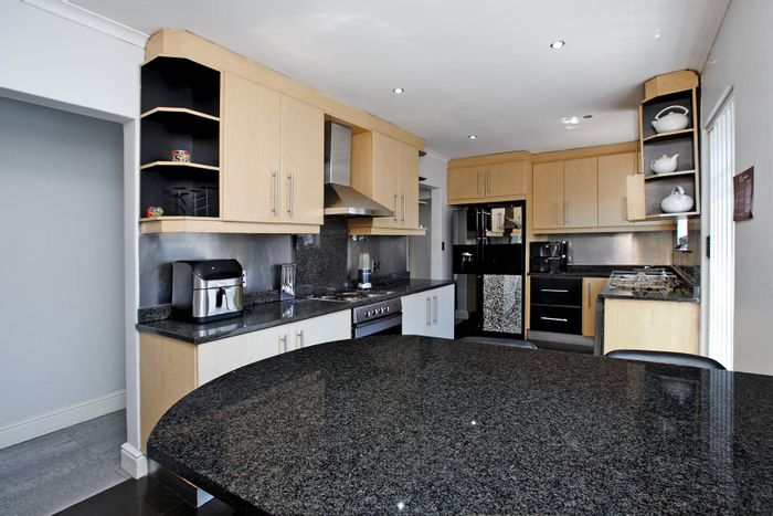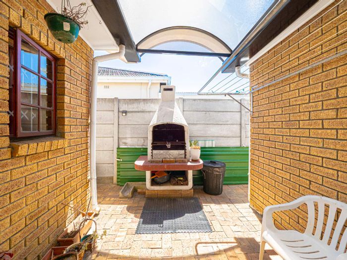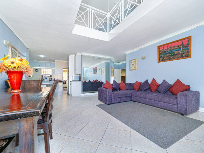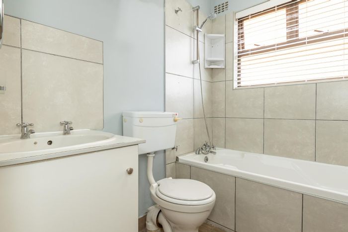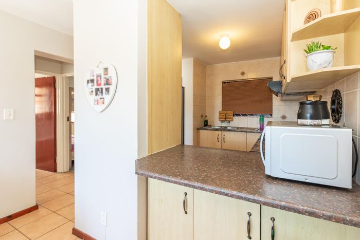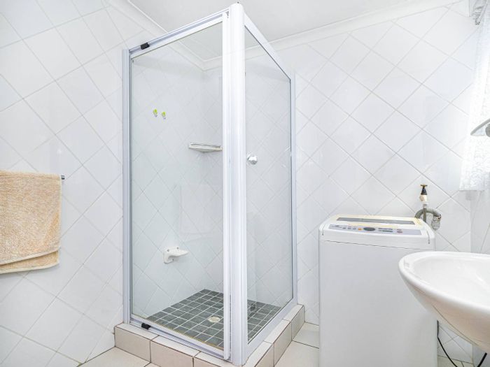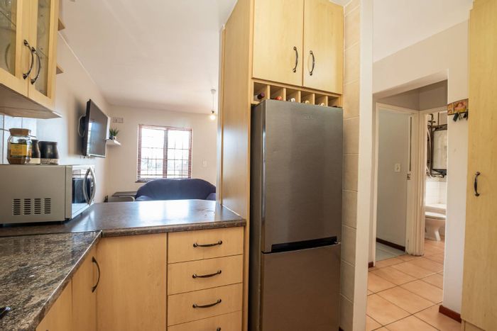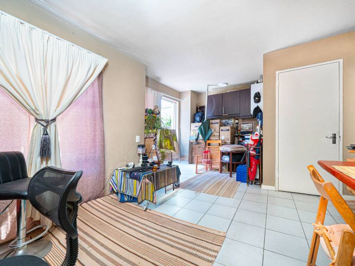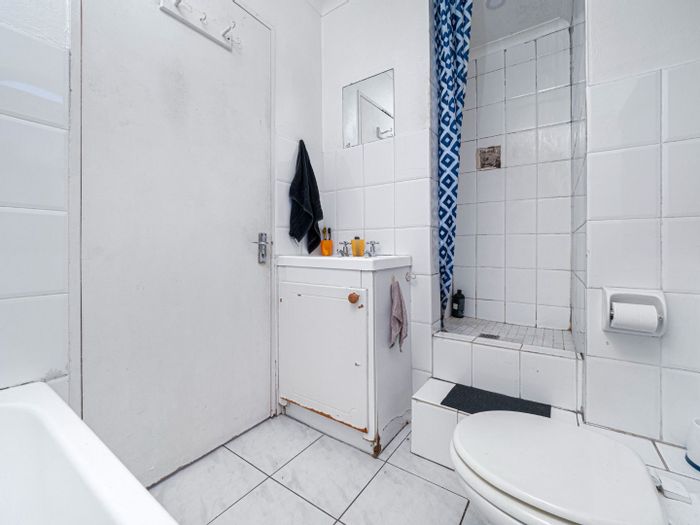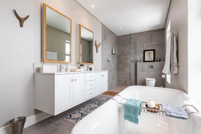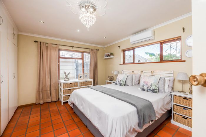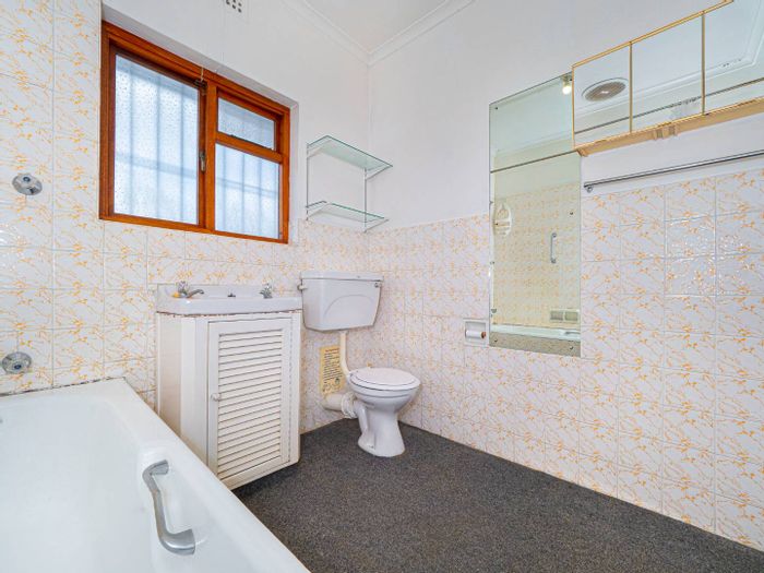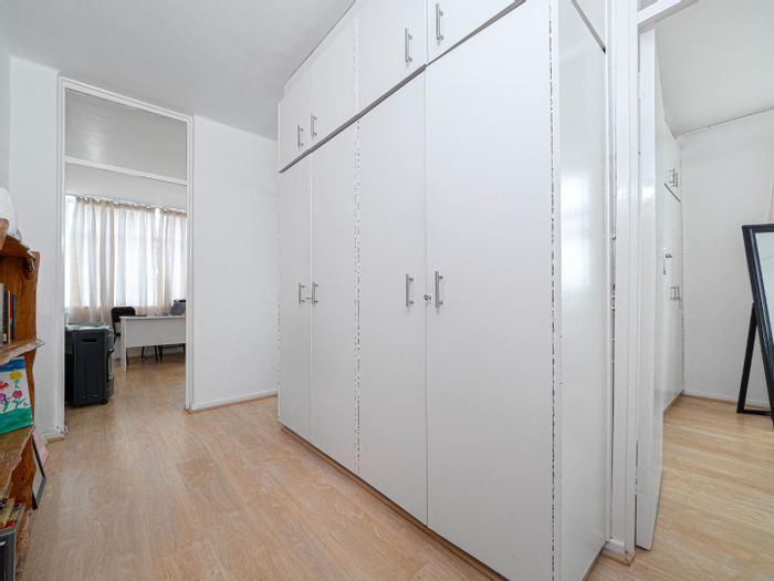 Morning-lit east-facing apartment with patio views of the Hottentot Holland Mountains in Claremont, open-plan living with American shutters, pool, gym and biometric access. 2 beds, 1.5 baths, 2 parking.