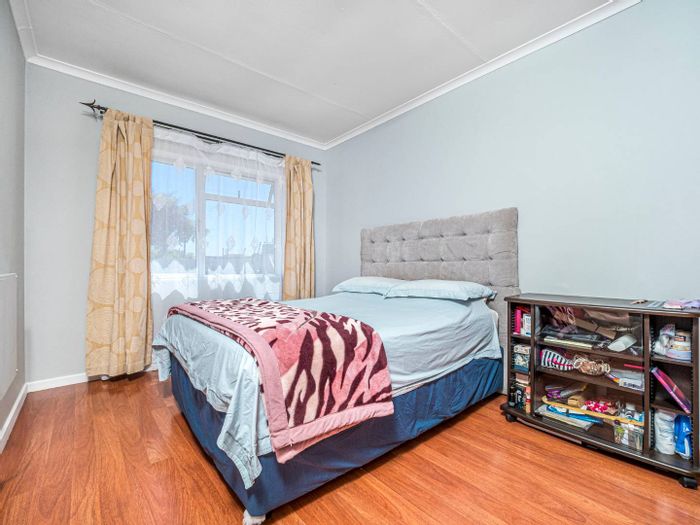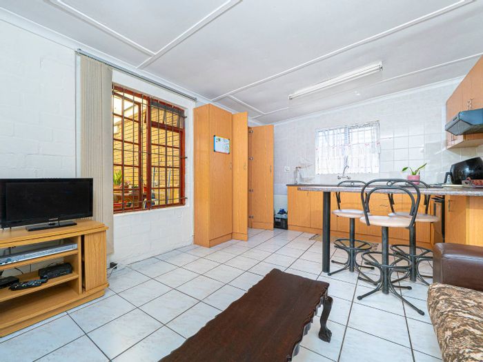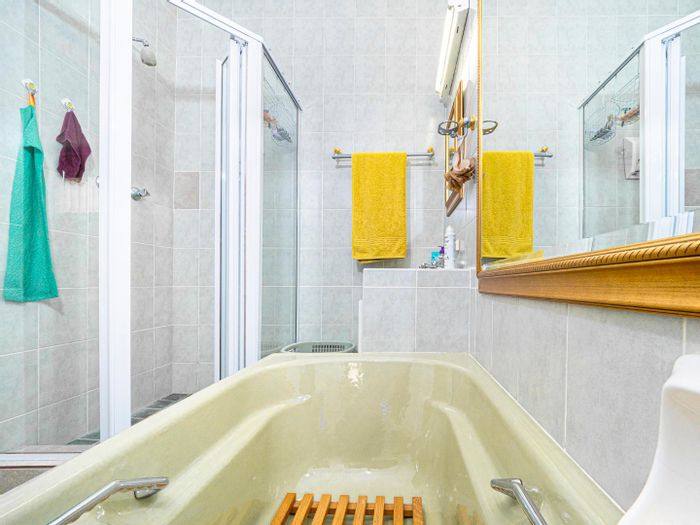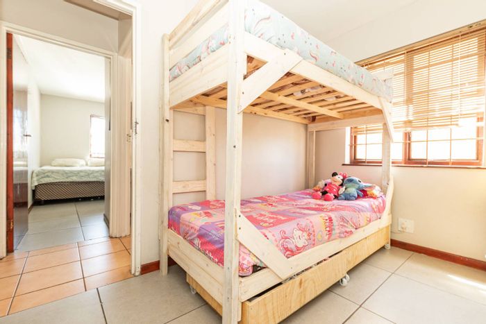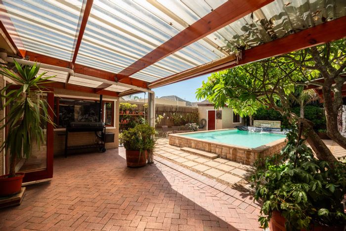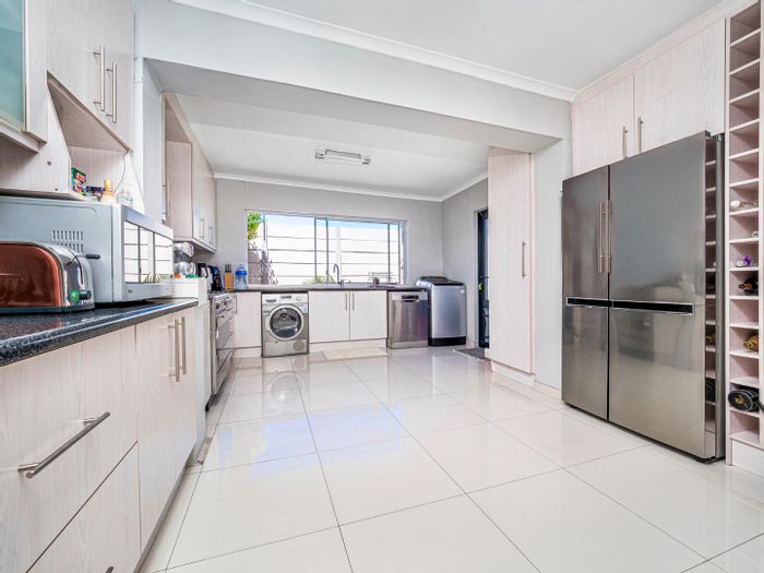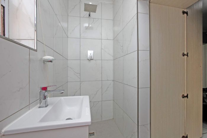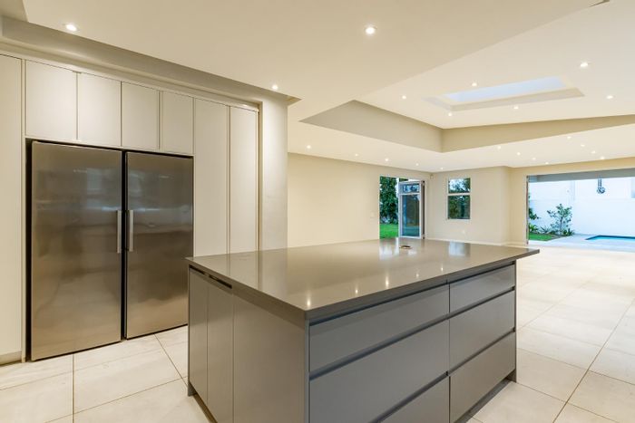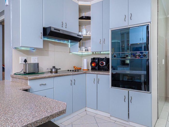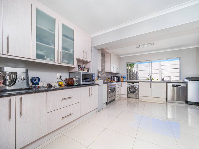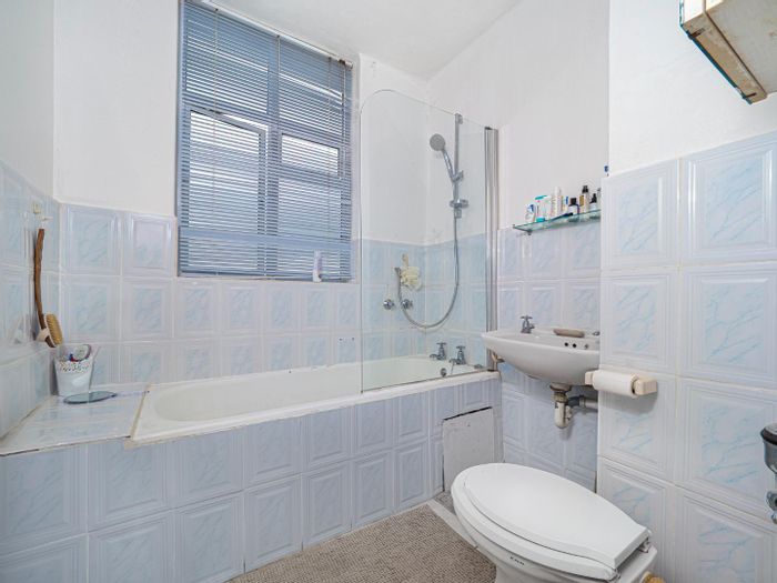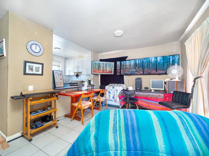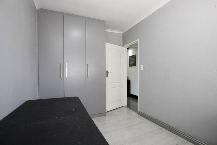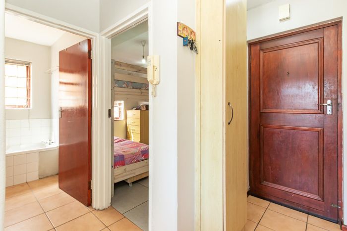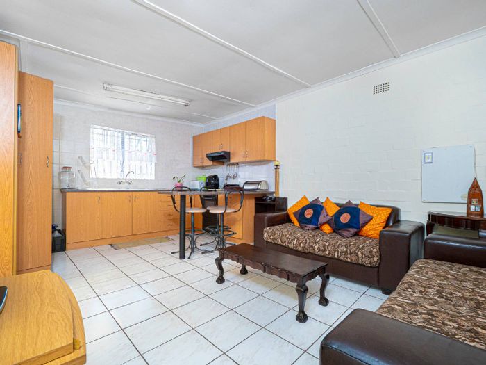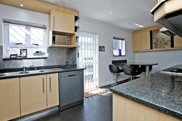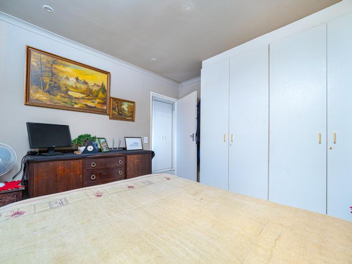 Morning-lit east-facing apartment with patio views of the Hottentot Holland Mountains in Claremont, open-plan living with American shutters, pool, gym and biometric access. 2 beds, 1.5 baths, 2 parking.