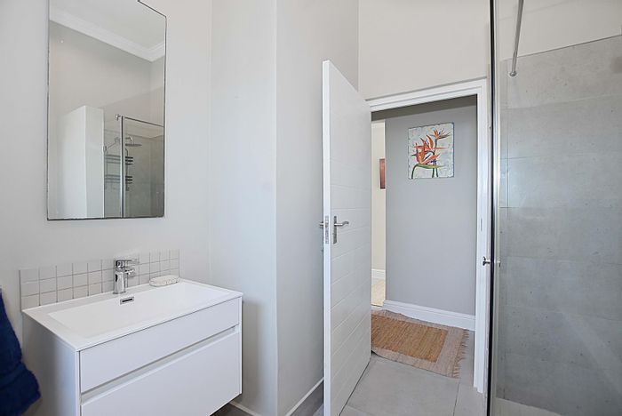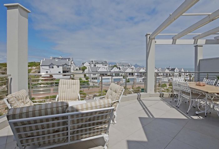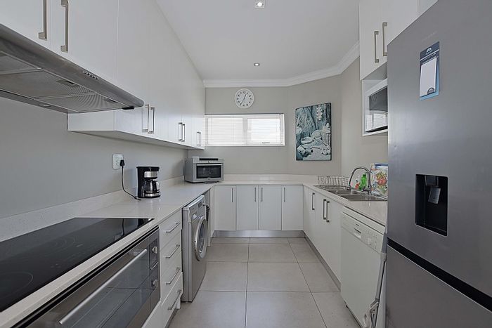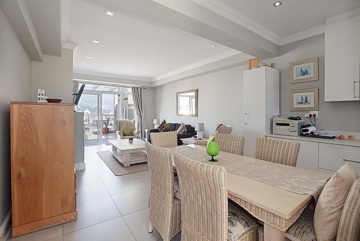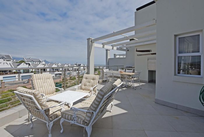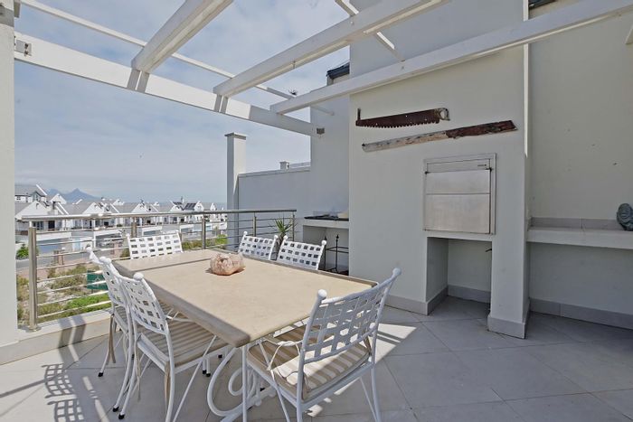 Coastal lifestyle in Big Bay, Blaauwberg with sea and mountain views. Open-plan lounge flows to large balcony with braai; fully furnished, two bedrooms, two bathrooms, two parking spaces.