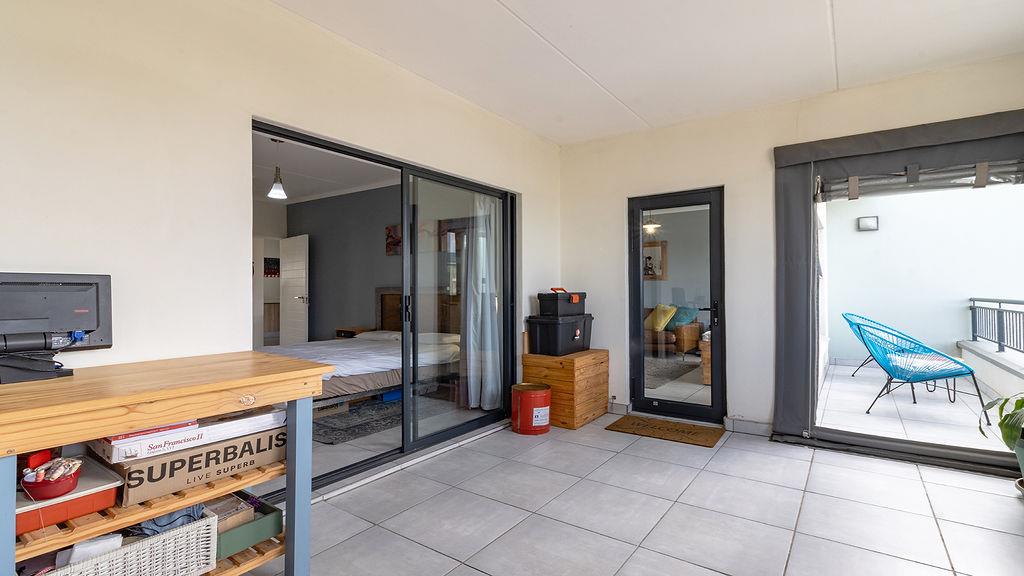 The sleek main bedroom leads out onto the enclosed part of the large balcony. The enclosed balcony offers a unique storage cabinet that can be utilised and is a very handy feature.