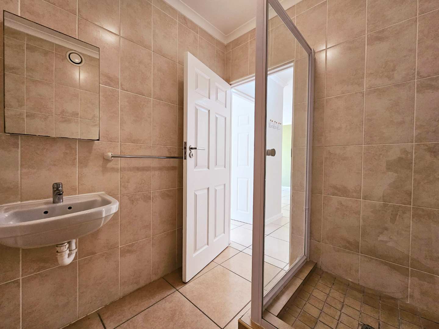 -1 Bathroom: Modern and functional, featuring a shower, basin, and toilet.