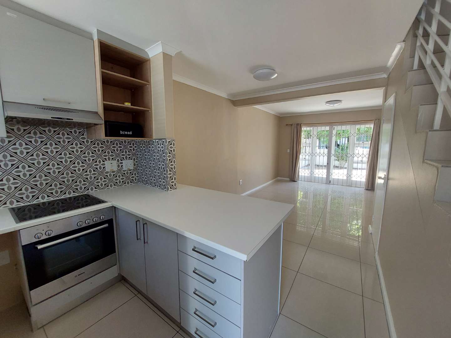 The living area flows easily into the kitchen, creating a practical layout for everyday living. At the back, a cozy patio area provides the perfect space for outdoor relaxation.