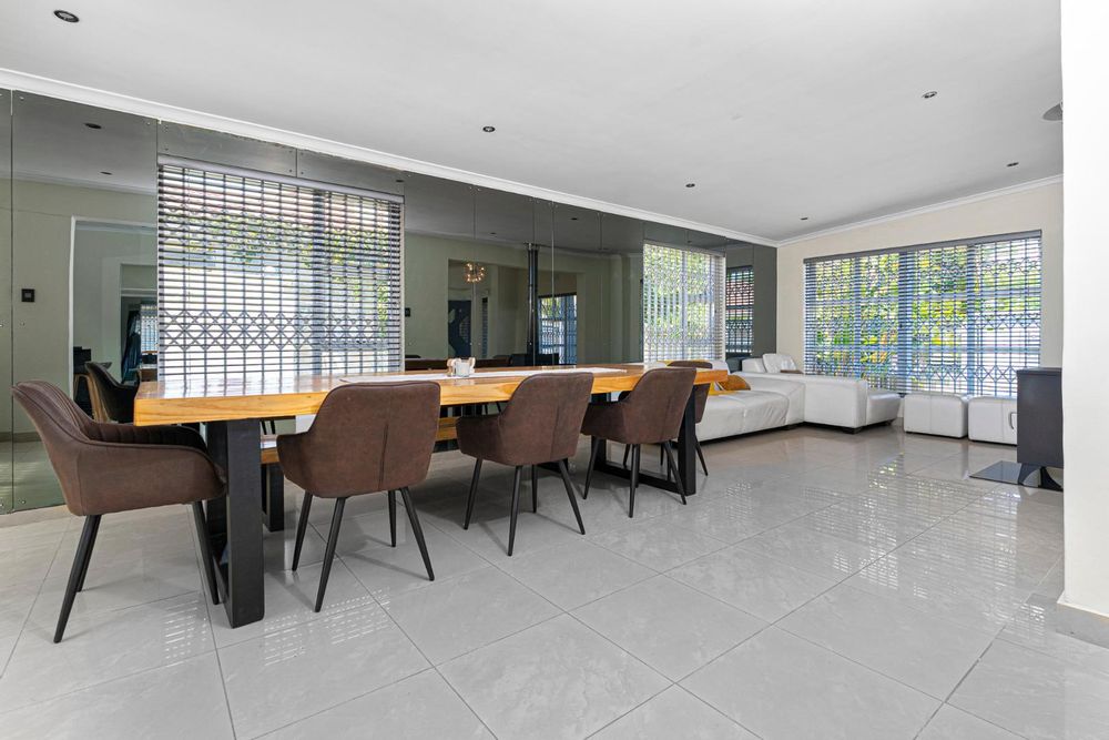 The dining area accommodates comfortably a 10 seater with sliding doors leading to the pool and entertainment area.