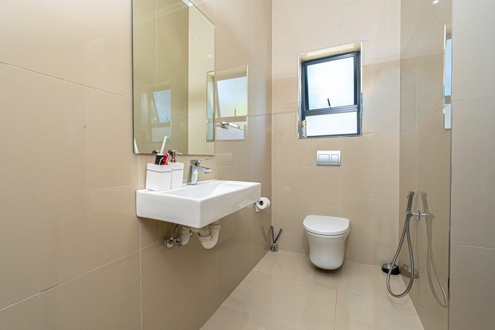 Modern bathrooms with quality fittings and finishes and its fully tiled.