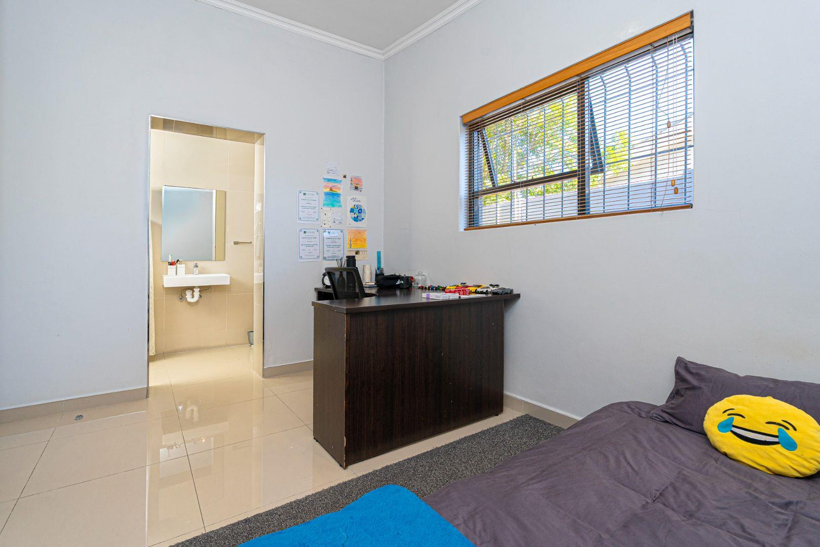 There are cameras,electric fencing and a solar geyser,downlights,air cons,blinds on all the windows,