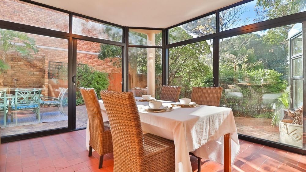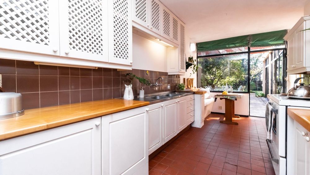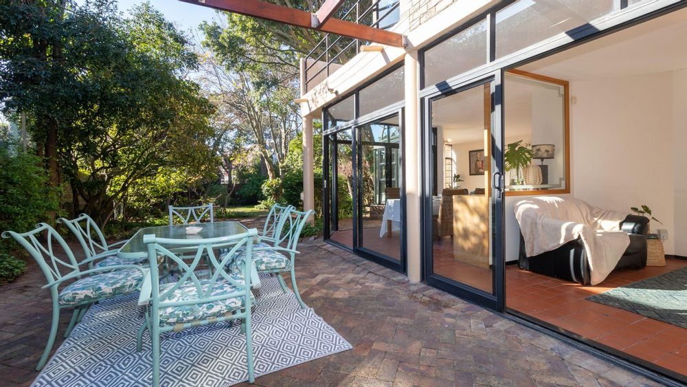 Downstairs, the home invites togetherness with an inviting lounge, dining room, and TV room, all bathed in natural light and opening through large sliding doors to the lush garden with mature trees, a perfect space for children to play and families to gather. A cosy fireplace in the lounge adds warmth and charm, making winter evenings extra special.
