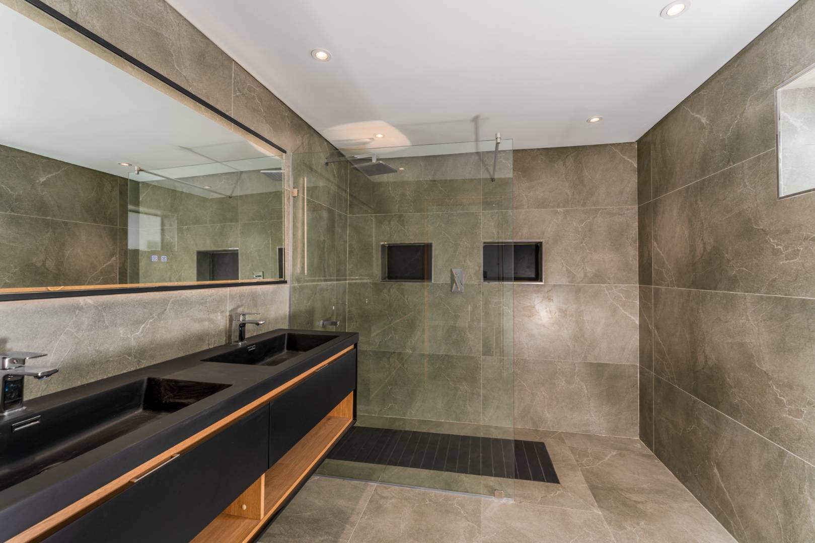 The property includes four spacious bedrooms. The main suite features a dressing room, and the home offers three well-appointed bathrooms—two en-suite and one shared—ensuring comfort for the entire family.