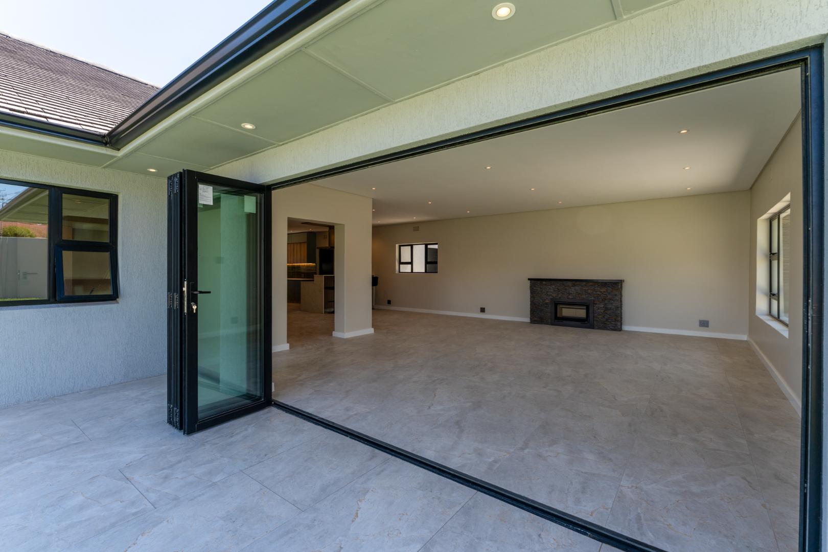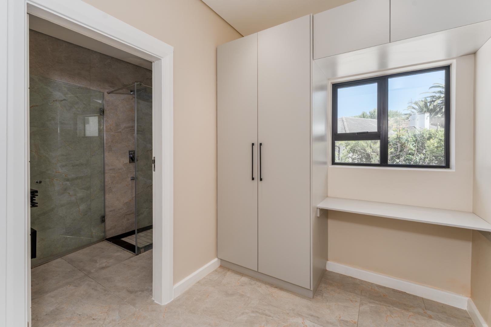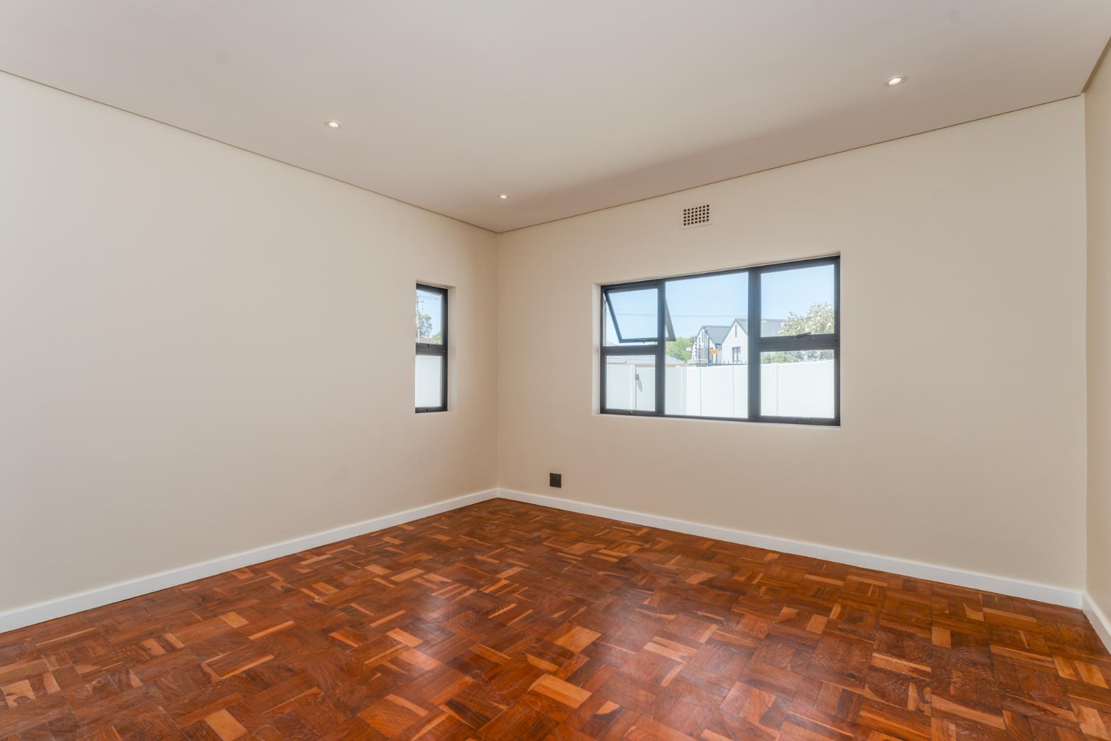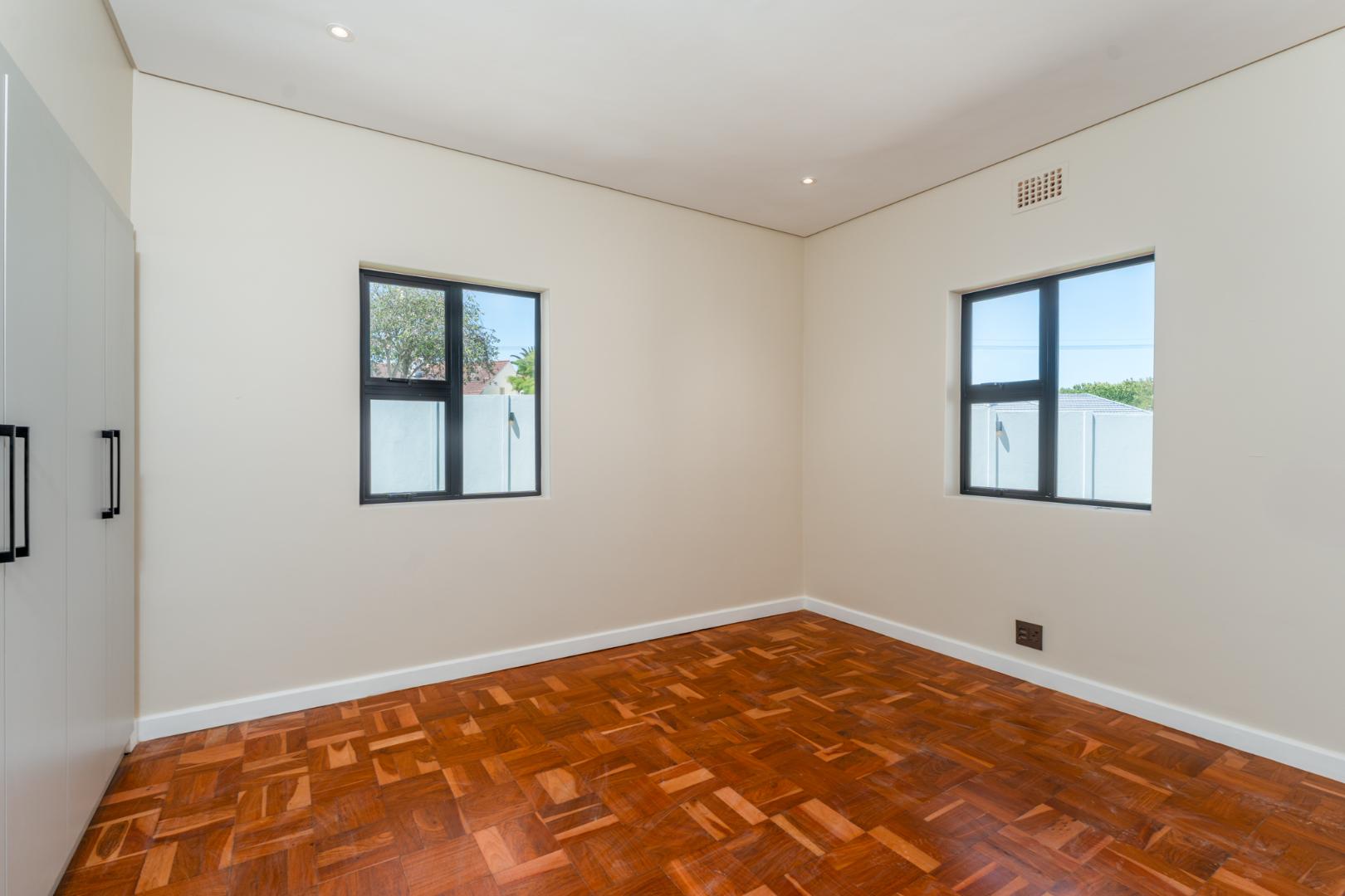 This newly renovated four-bedroom home in Rondebosch offers a blend of modern comfort and practical family living. The open-plan living area is bright and welcoming, with stacking doors that create a smooth transition to the private garden and entertainment patio, complete with a built-in braai. A wood-burning fireplace brings warmth to the lounge, and the contemporary kitchen includes quality finishes.