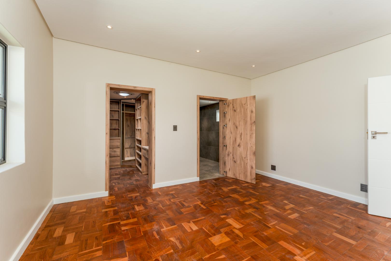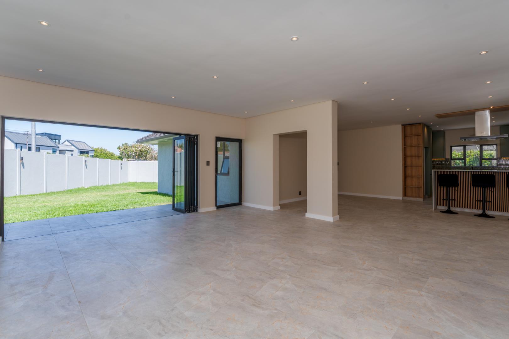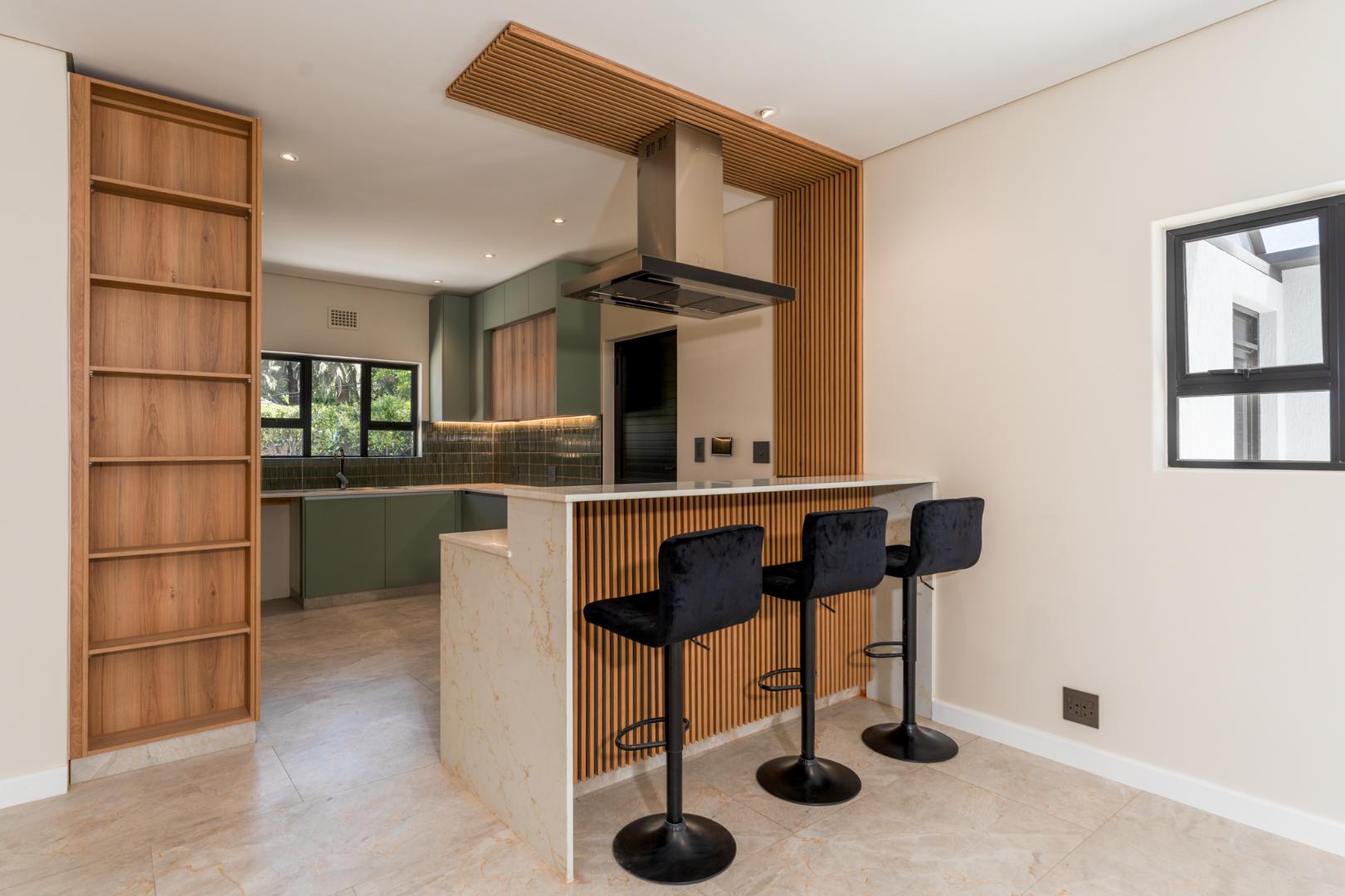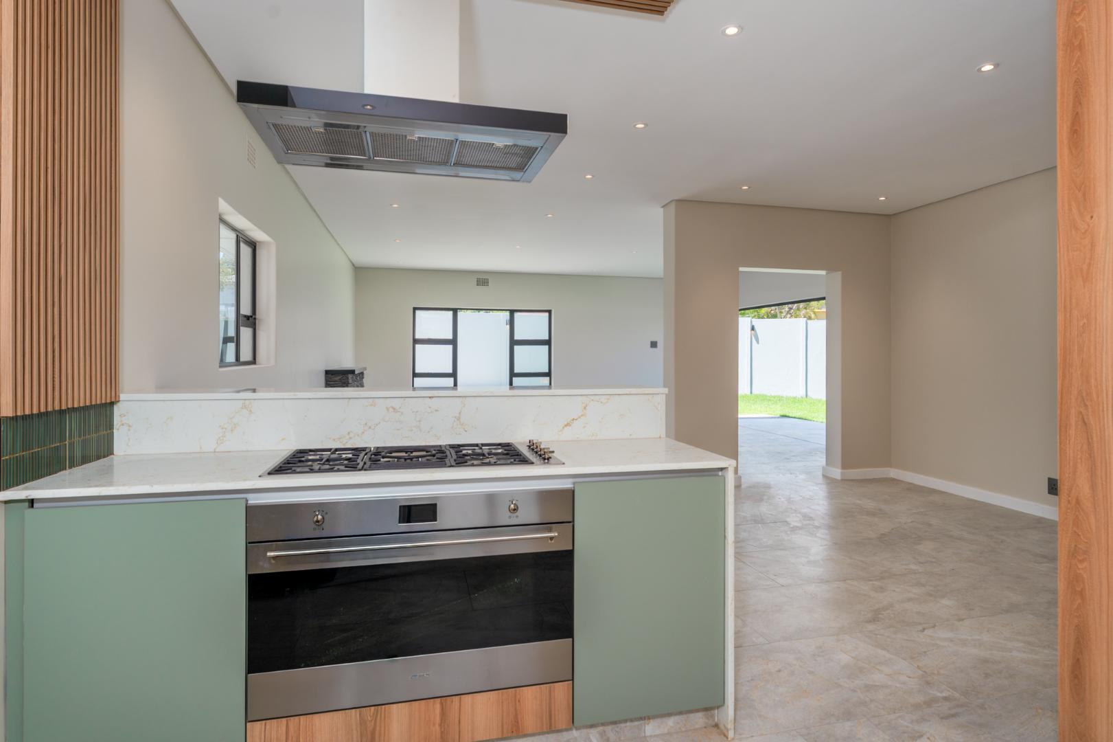 This newly renovated four-bedroom home in Rondebosch offers a blend of modern comfort and practical family living. The open-plan living area is bright and welcoming, with stacking doors that create a smooth transition to the private garden and entertainment patio, complete with a built-in braai. A wood-burning fireplace brings warmth to the lounge, and the contemporary kitchen includes quality finishes.