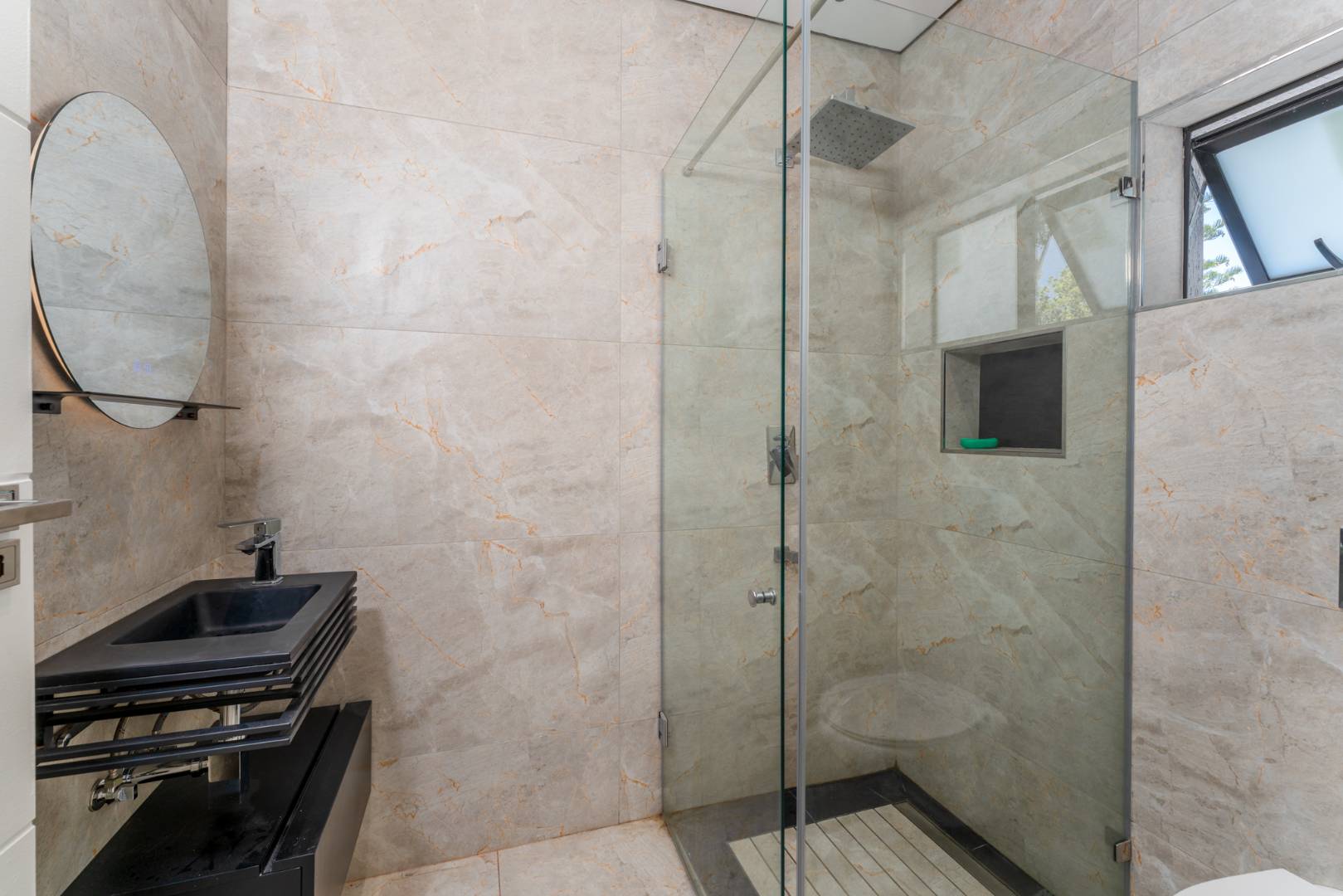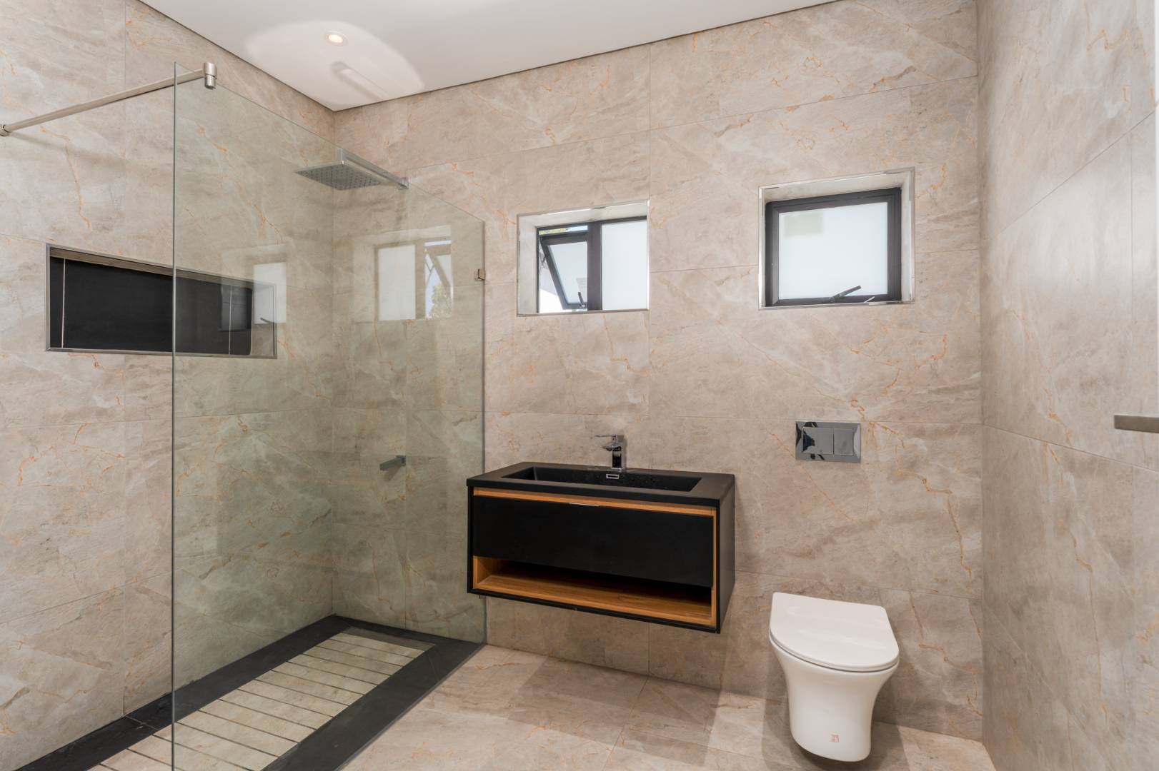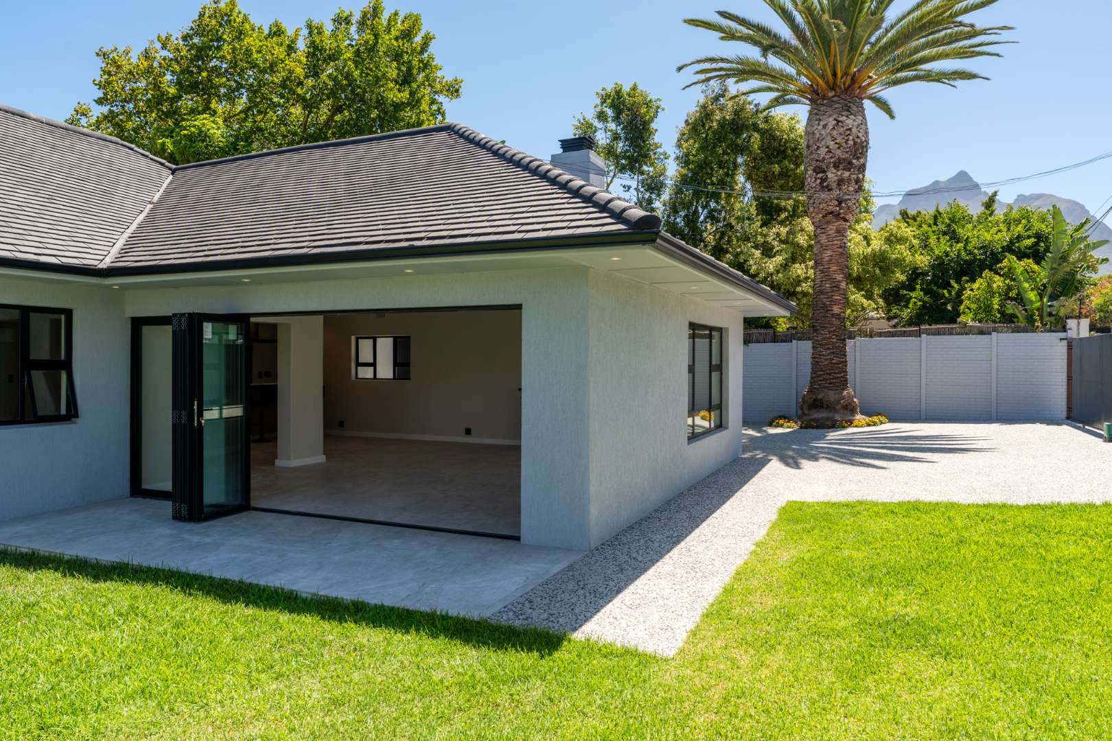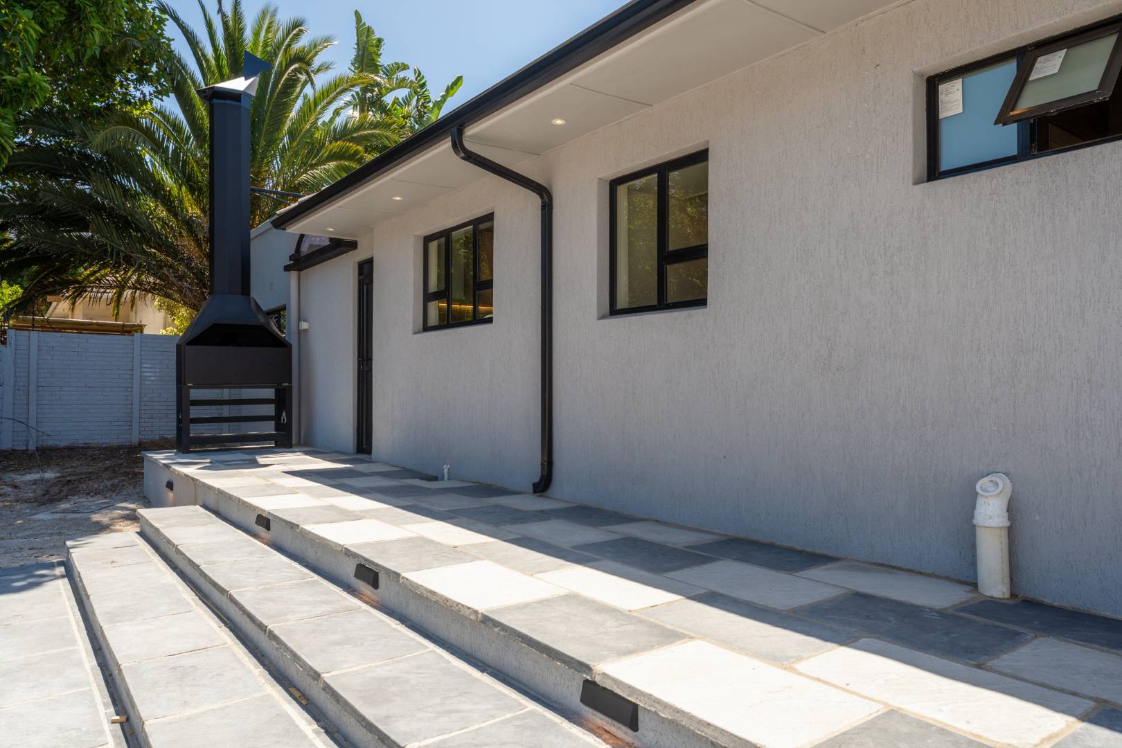 This newly renovated four-bedroom home in Rondebosch offers a blend of modern comfort and practical family living. The open-plan living area is bright and welcoming, with stacking doors that create a smooth transition to the private garden and entertainment patio, complete with a built-in braai. A wood-burning fireplace brings warmth to the lounge, and the contemporary kitchen includes quality finishes.