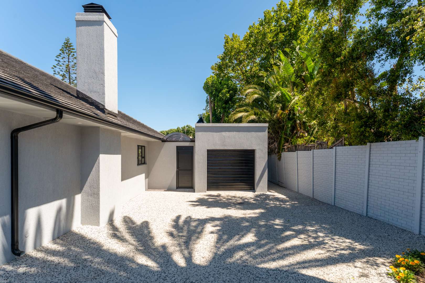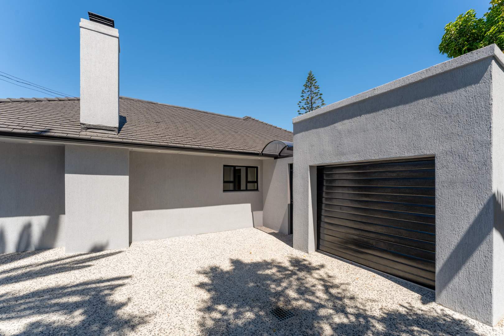 Additional features include an inverter system for uninterrupted power, a single garage with direct access, secure off-street parking for up to five vehicles, and an intercom with a camera system. High-quality finishes are found throughout the home.