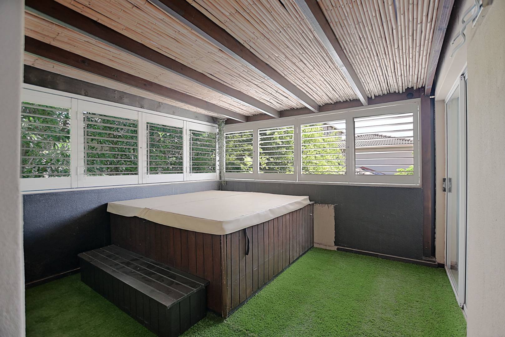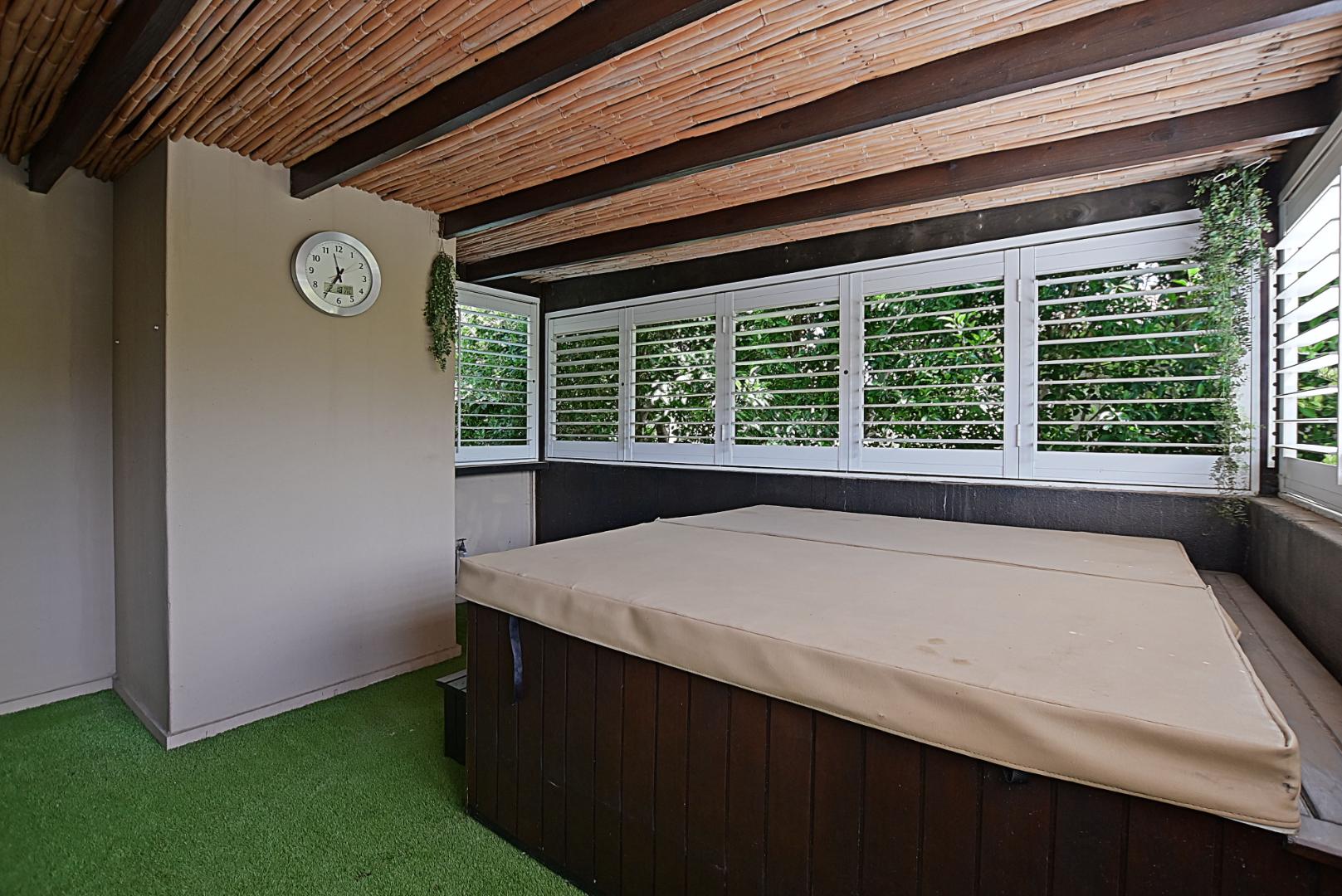 Indulge in your own private retreat, with a beautifully appointed jacuzzi spa room, designed for ultimate relaxation, with aluminium shutters all round. A tranquil space offering a resort-style experience, in the comfort of your home.