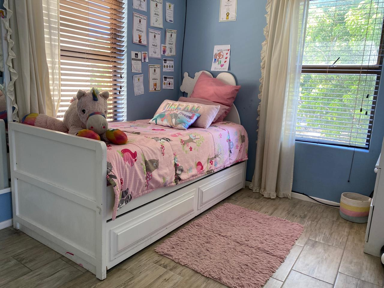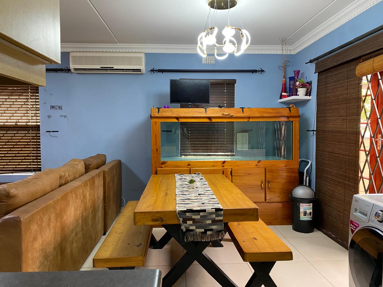 Outside, you are welcomed by a lovely, well-sized yard perfect for children to play, pets to roam, or for hosting family gatherings and braais.