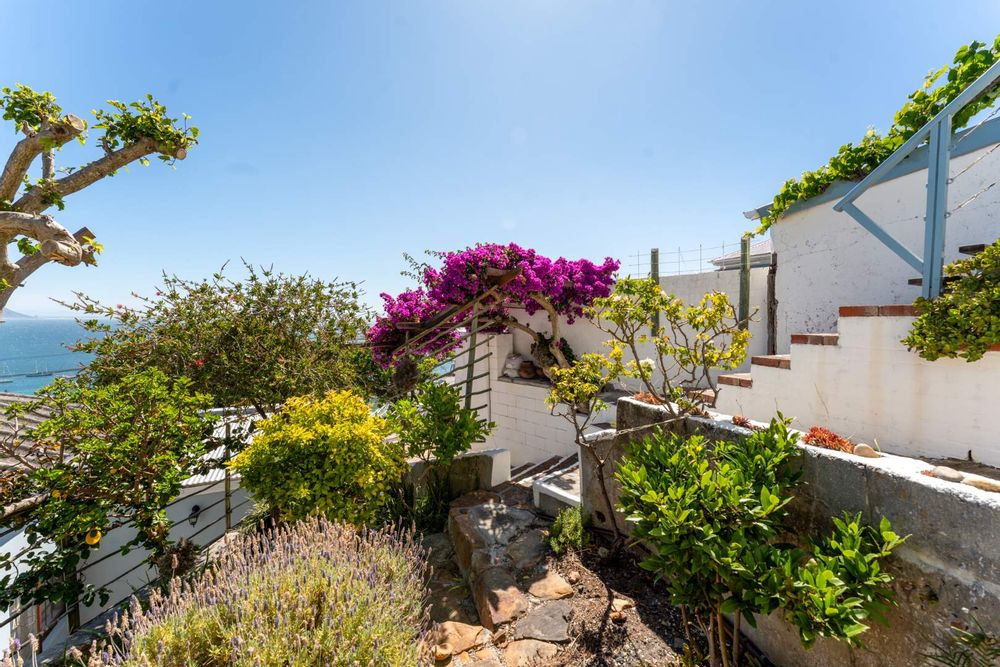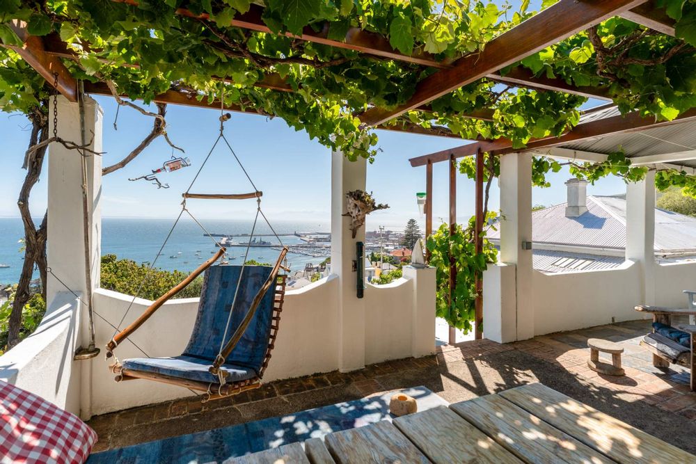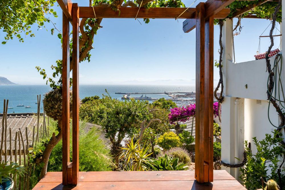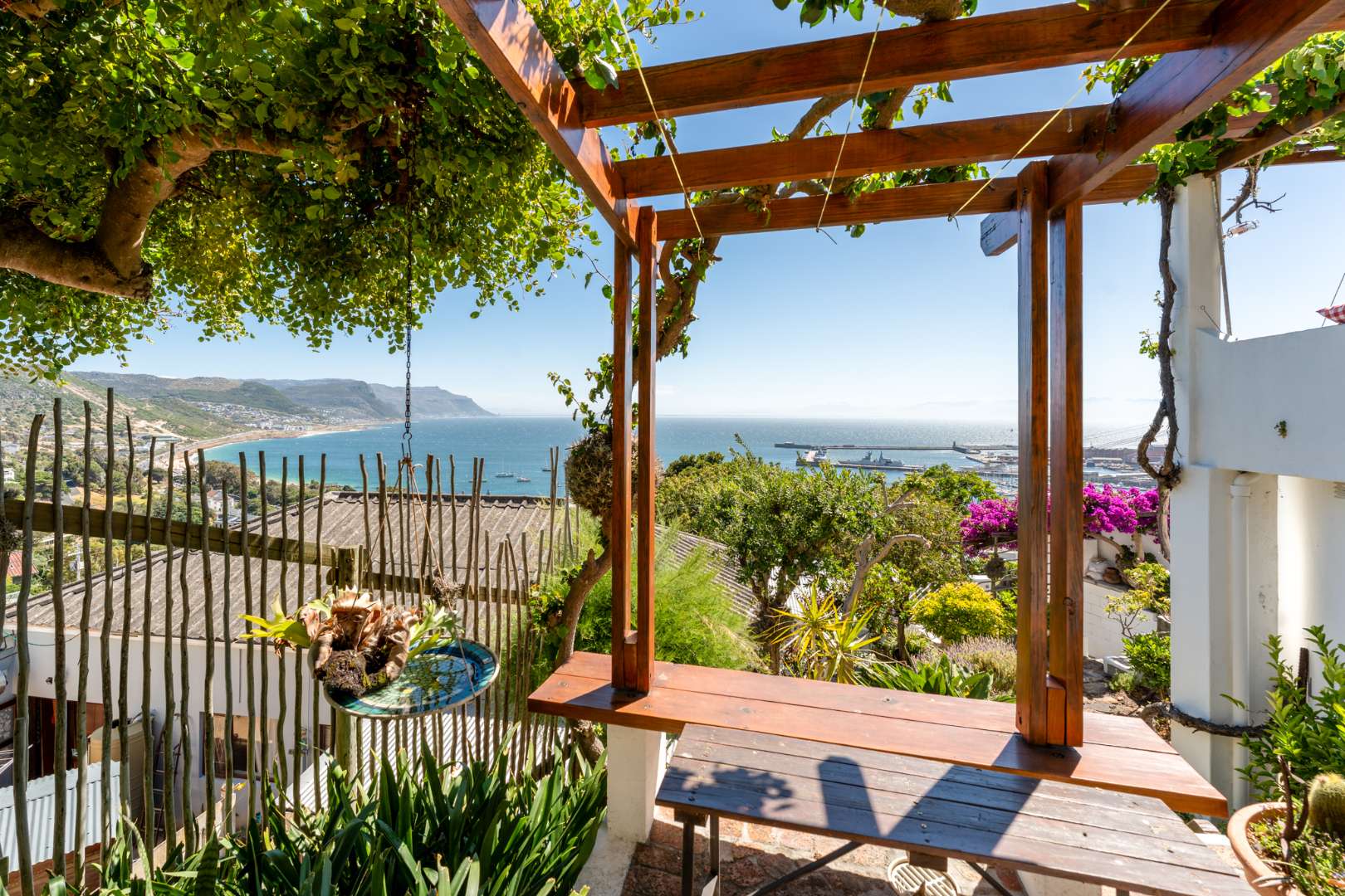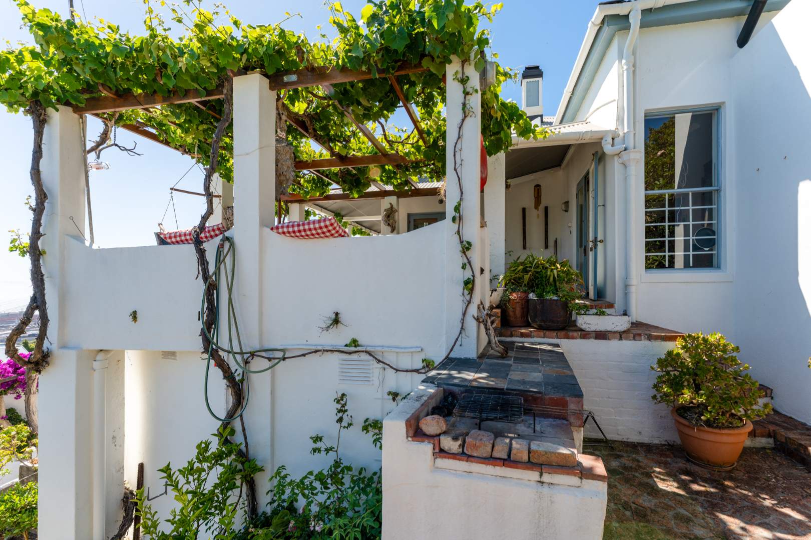 Perched on the tranquil slopes above Simon’s Town, this enchanting historical two-bedroom cottage blends timeless character with breathtaking coastal vistas. Warm wooden floors flow through the living areas and bedrooms, while both bathrooms feature elegant slate flooring, including a master ensuite with a dressing wardrobe and built-in cupboard. The sitting room, complete with an open fireplace, opens through French doors or stacking doors onto a sun-drenched patio shaded by a grape-covered pergola. An ideal setting to soak in uninterrupted views across Simon’s Bay and the sweeping coastline. The kitchen pairs rustic charm with practicality, offering slate floors, terrazzo countertops, build in hob and ample built-in cupboards.