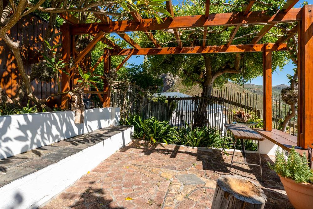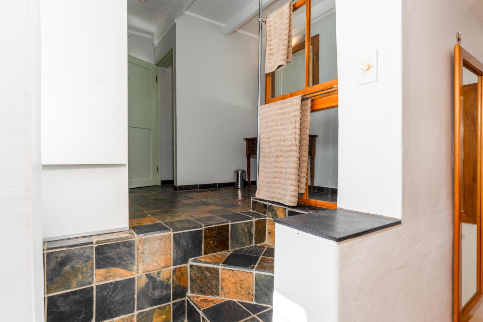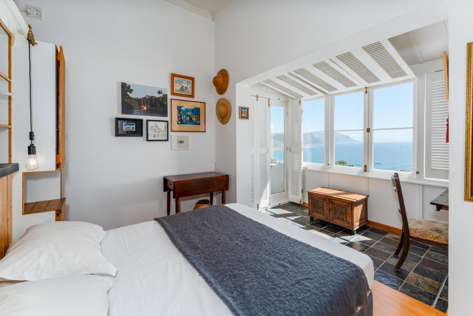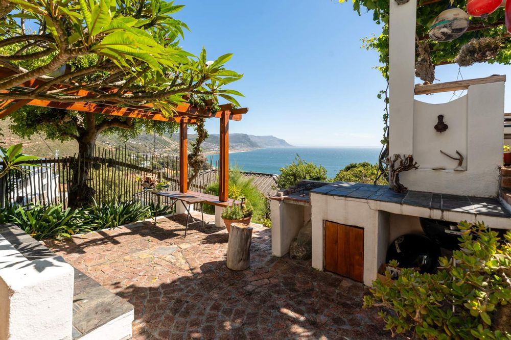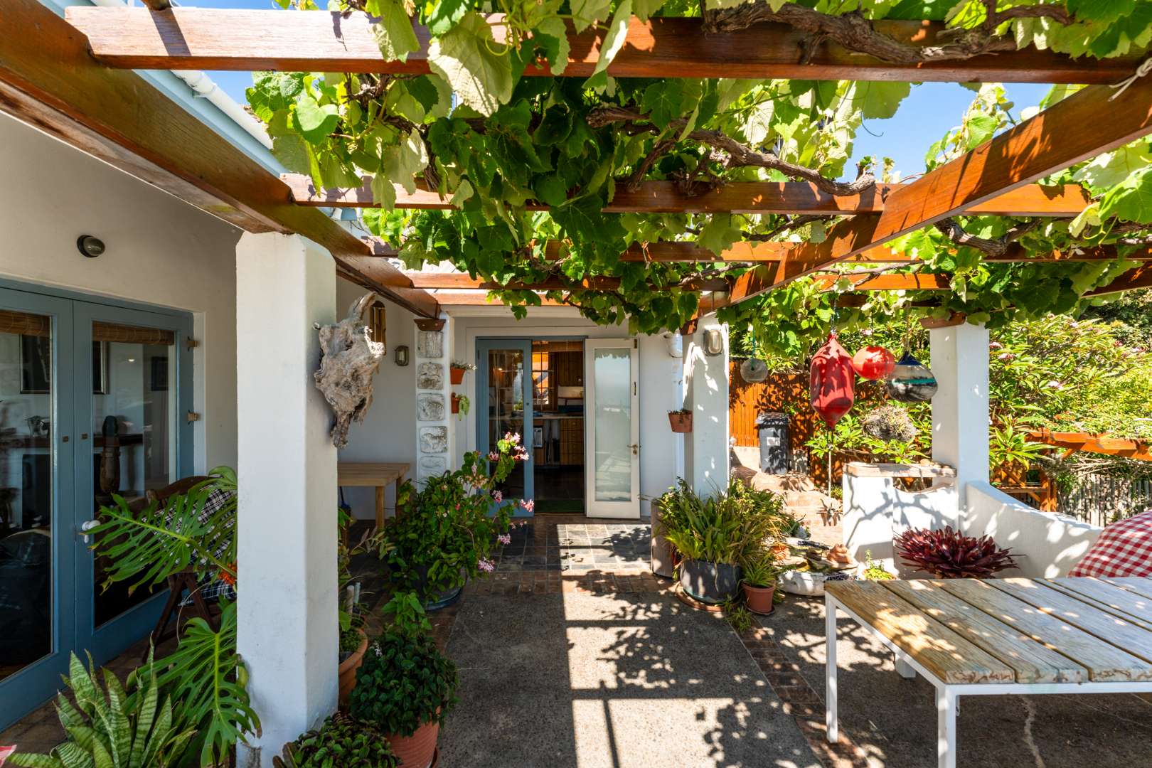 Perched on the tranquil slopes above Simon’s Town, this enchanting historical two-bedroom cottage blends timeless character with breathtaking coastal vistas. Warm wooden floors flow through the living areas and bedrooms, while both bathrooms feature elegant slate flooring, including a master ensuite with a dressing wardrobe and built-in cupboard. The sitting room, complete with an open fireplace, opens through French doors or stacking doors onto a sun-drenched patio shaded by a grape-covered pergola. An ideal setting to soak in uninterrupted views across Simon’s Bay and the sweeping coastline. The kitchen pairs rustic charm with practicality, offering slate floors, terrazzo countertops, build in hob and ample built-in cupboards.