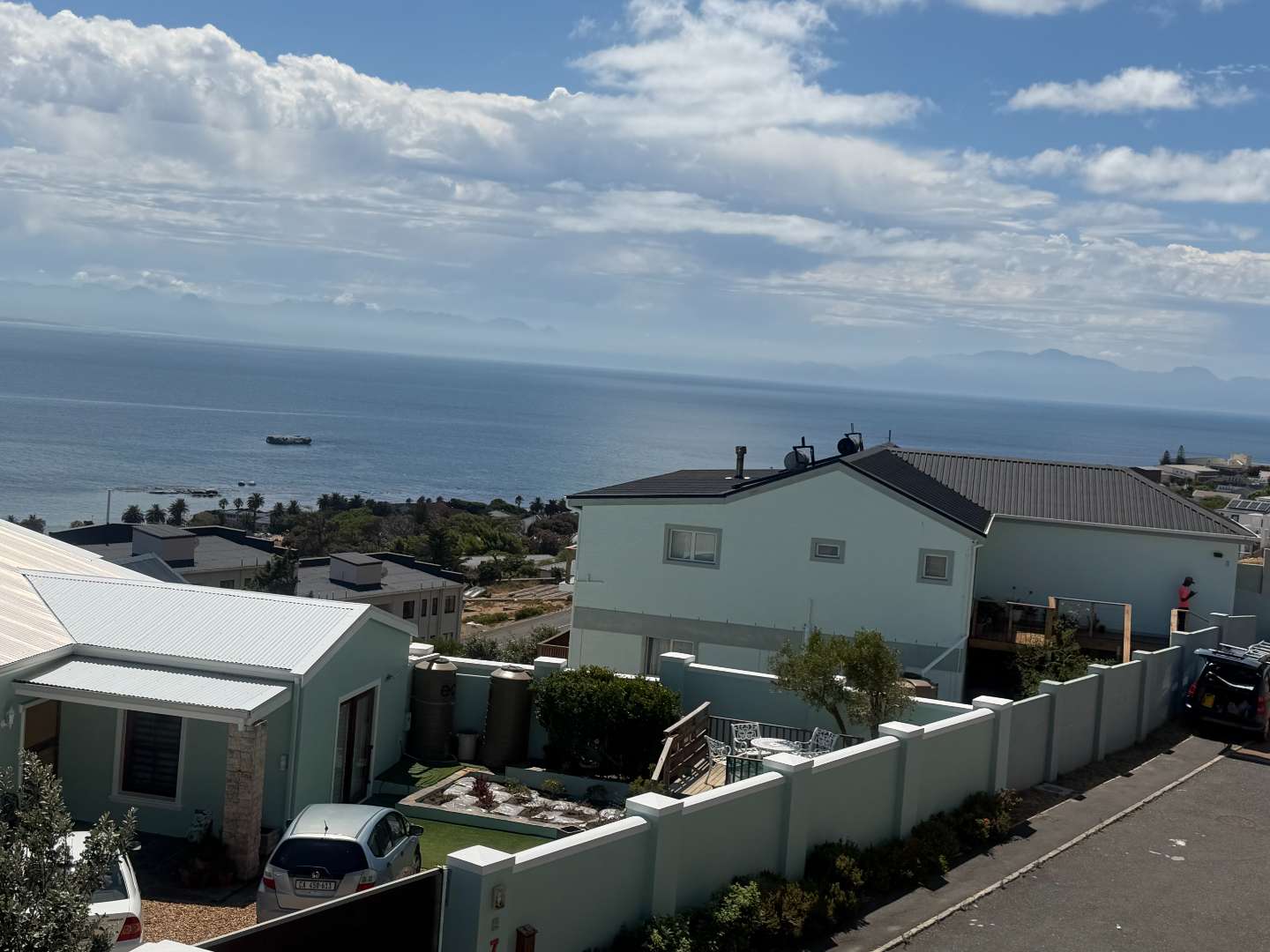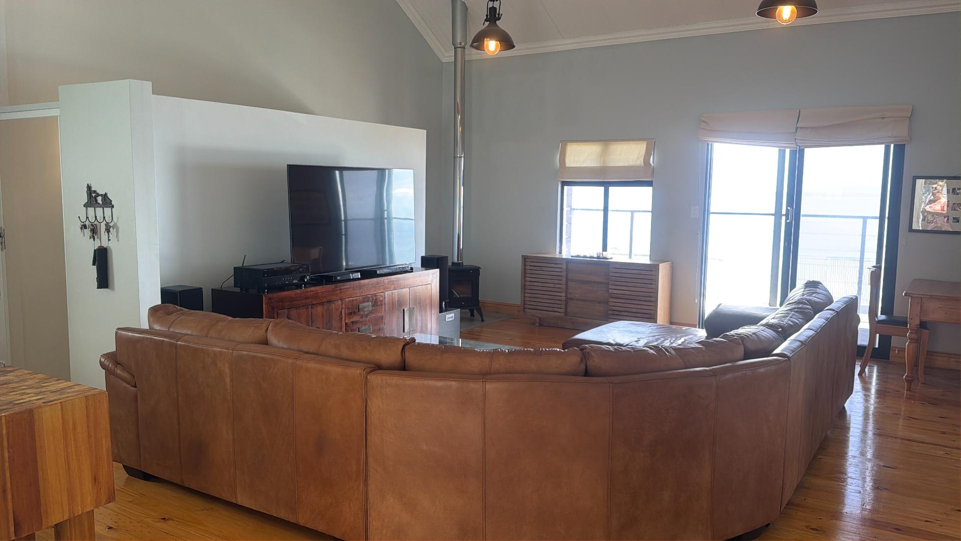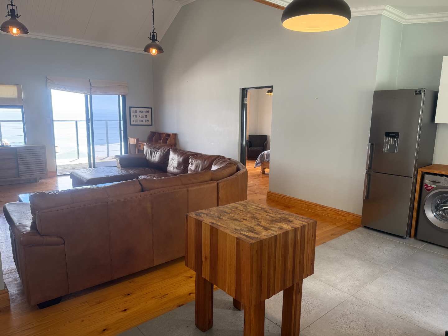 Spacious open plan living (kitchen, lounge, and dining). Lounge with doors leading to a balcony with the most amazing views of False Bay, it also has a fireplace for those cold winter nights.