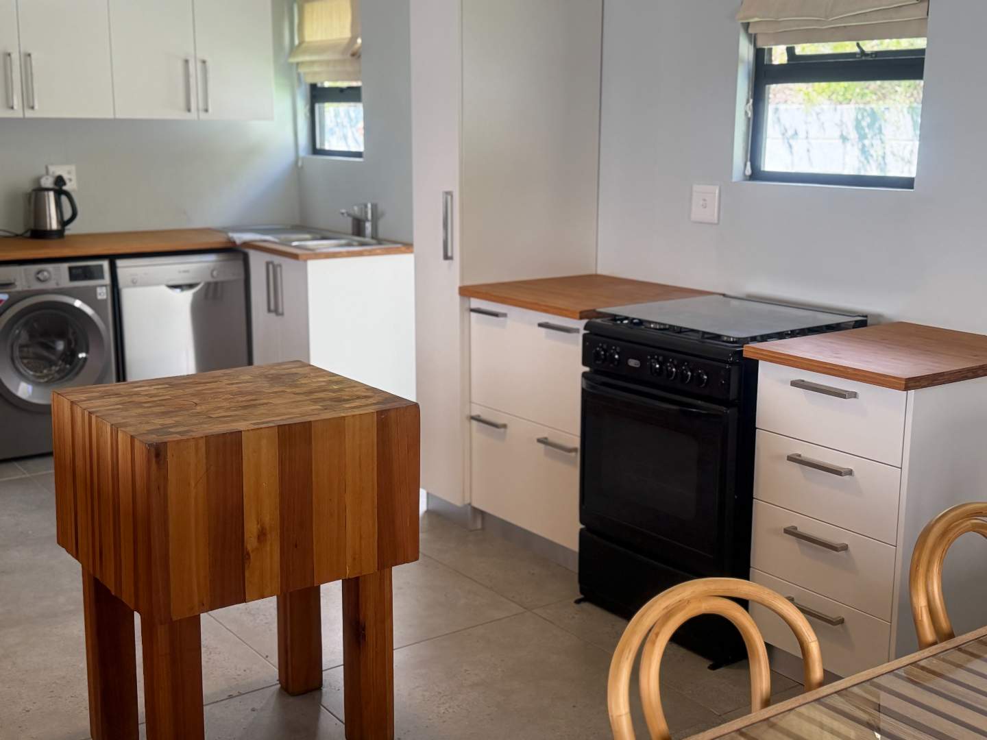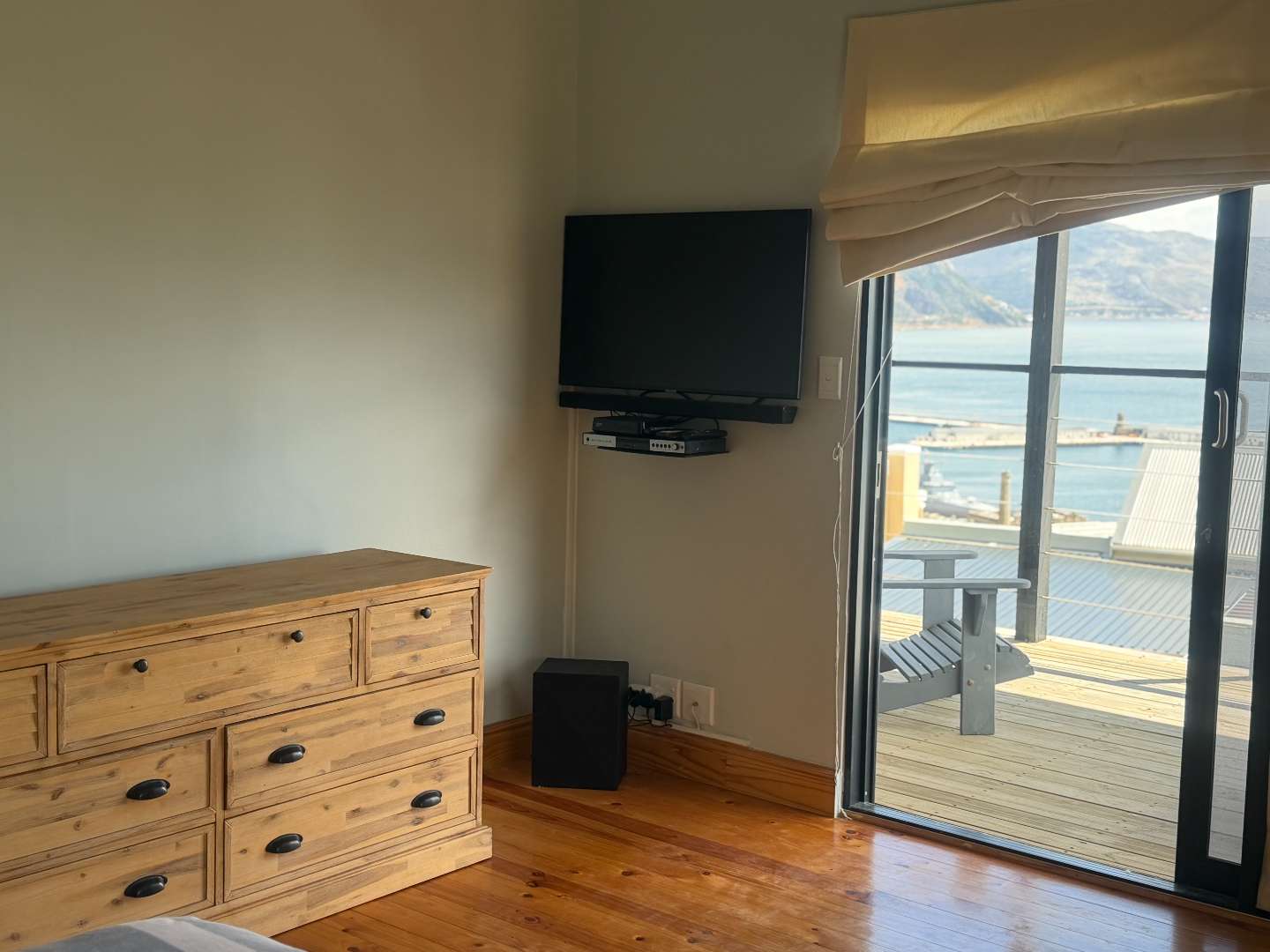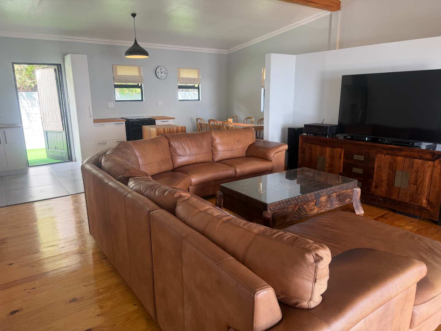 Spacious open plan living (kitchen, lounge, and dining). Lounge with doors leading to a balcony with the most amazing views of False Bay, it also has a fireplace for those cold winter nights.