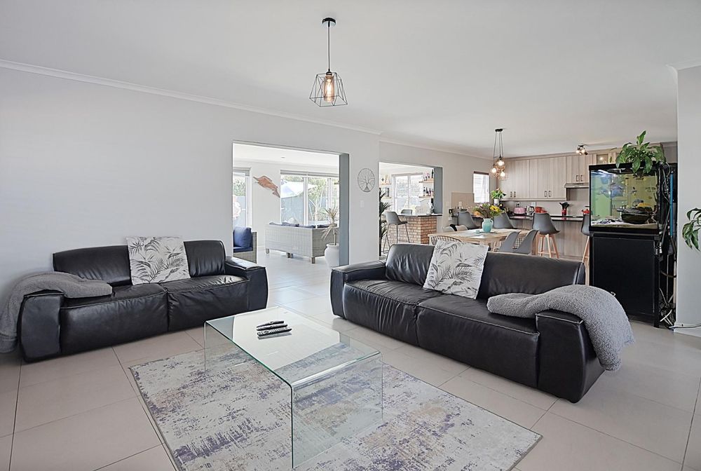 Step inside and immediately feel the generous sense of space throughout. The open-plan living areas flow seamlessly from a well-appointed kitchen and scullery boasting ample cupboards and plumbing points. A large lounge and massive enclosed entertainment area complete with a built-in braai and bar. Whether it’s summer or winter, entertaining here is effortless and enjoyable.