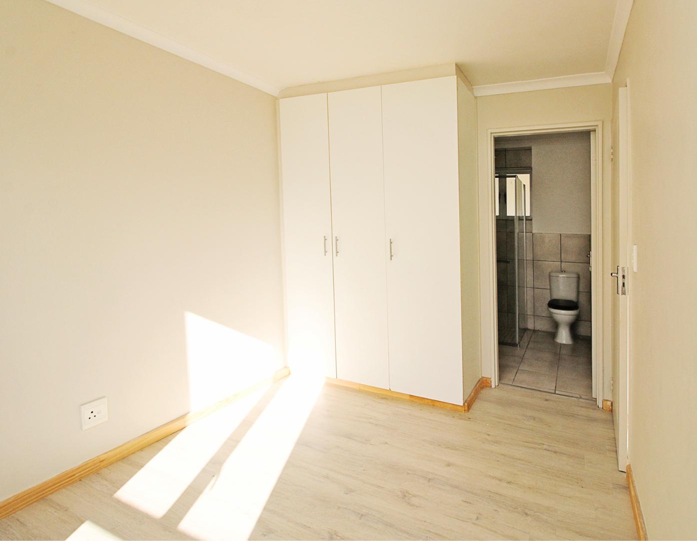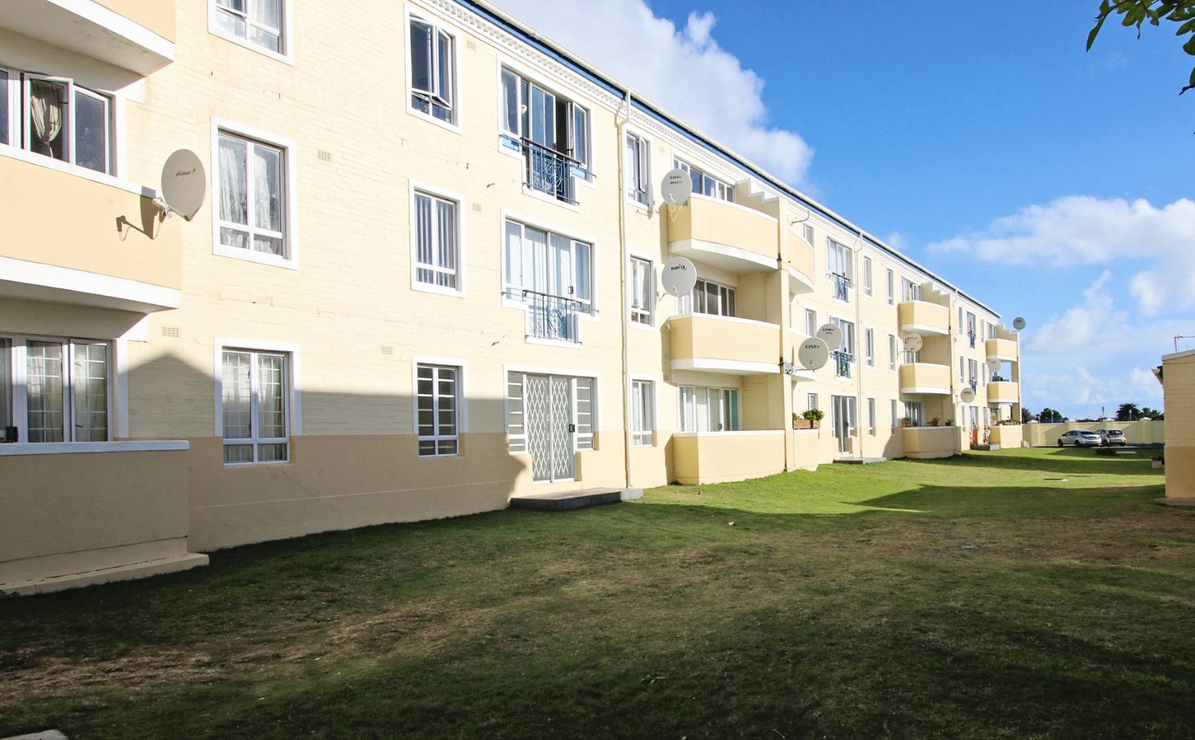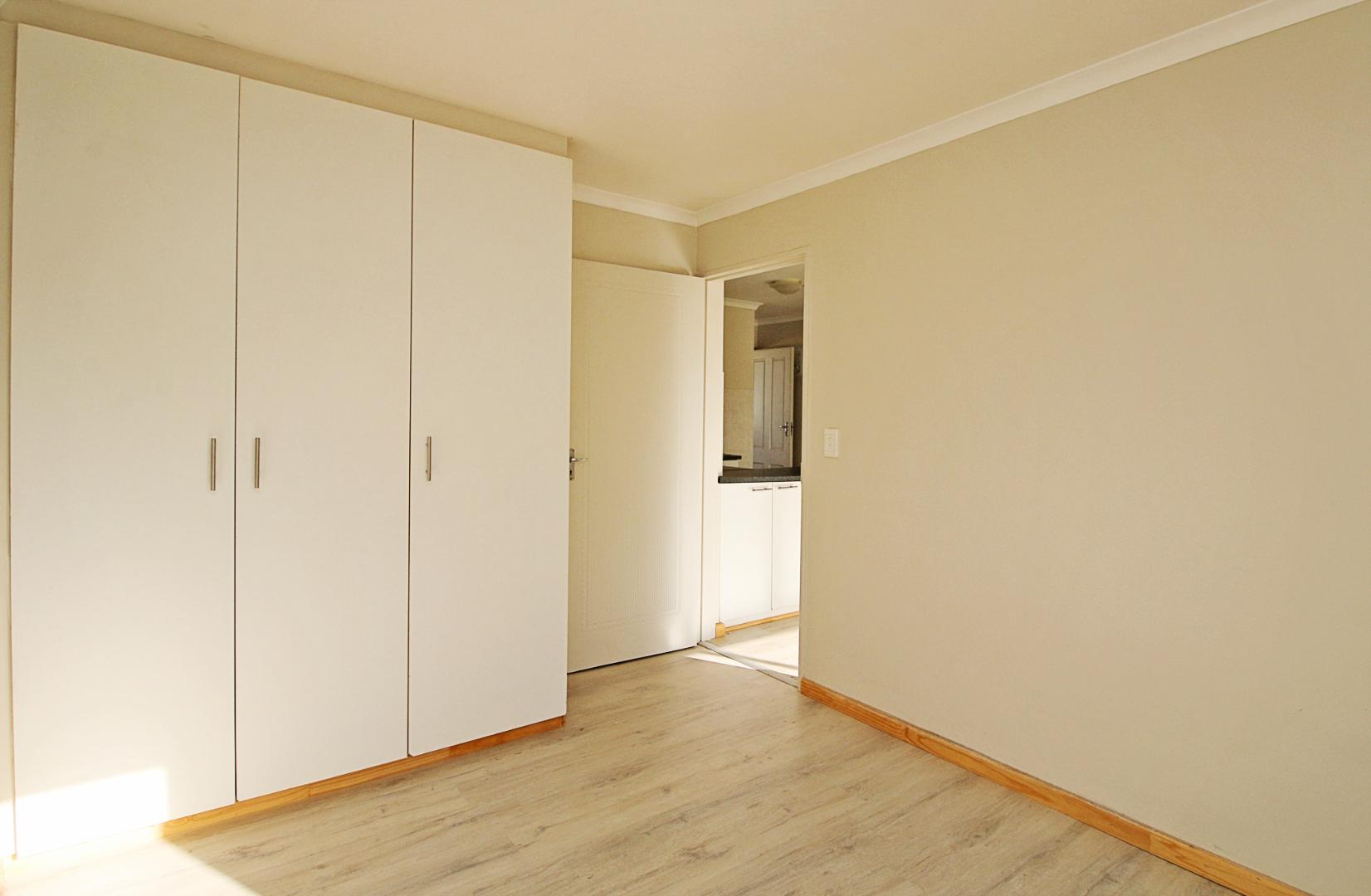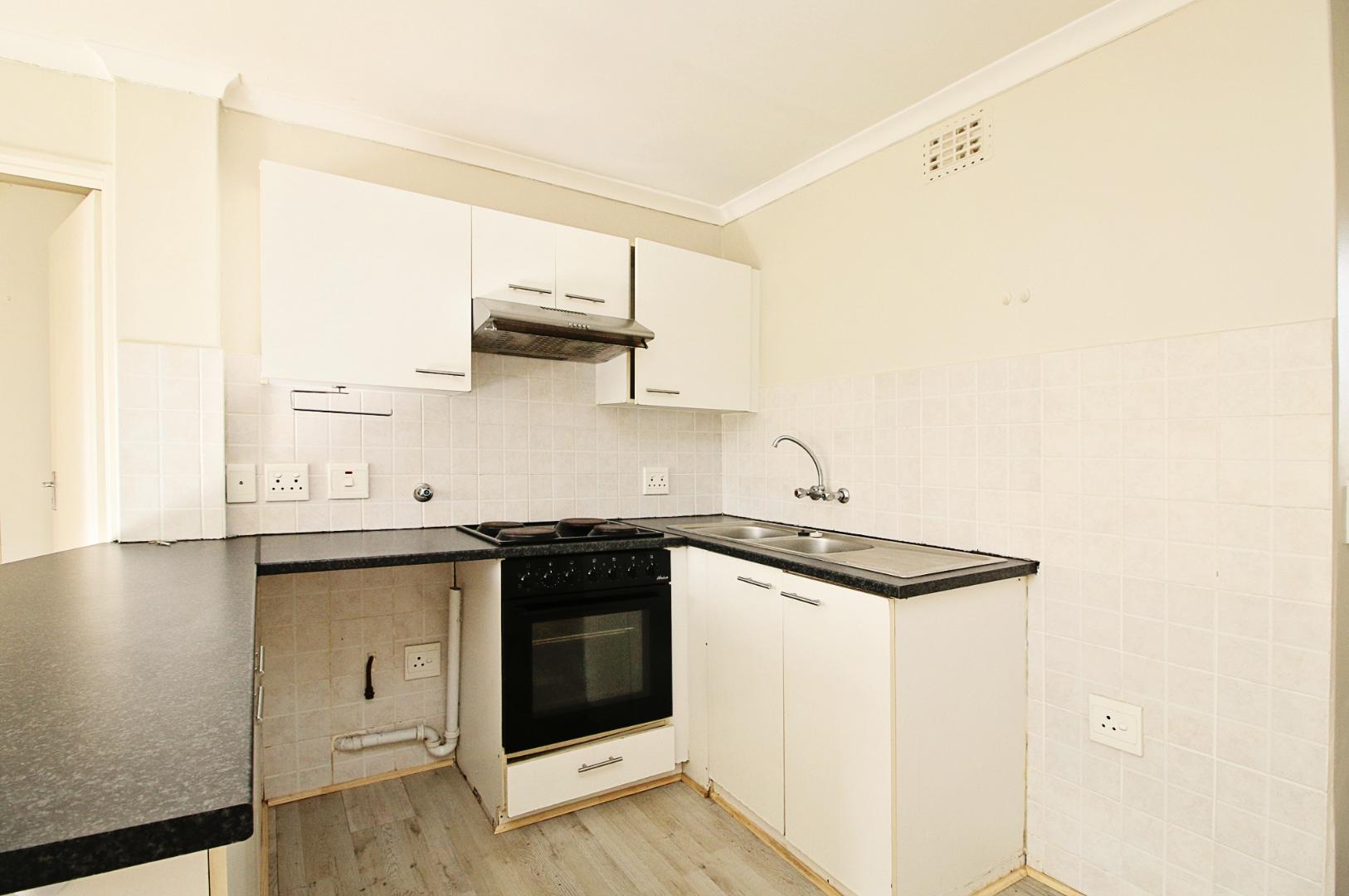 This first floor apartment is at Longbeach Village and consists of an open plan lounge and fitted kitchen. The lounge leads to a small balcony and the kitchen is fitted with an oven and hob and has plumbing for a front loader washing machine. The bedroom has built in cupboards with an en-suite bathroom consisting of a shower, basin and loo. There is a designated parking bay for one car. Electricity is pre-paid.