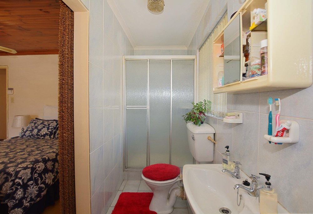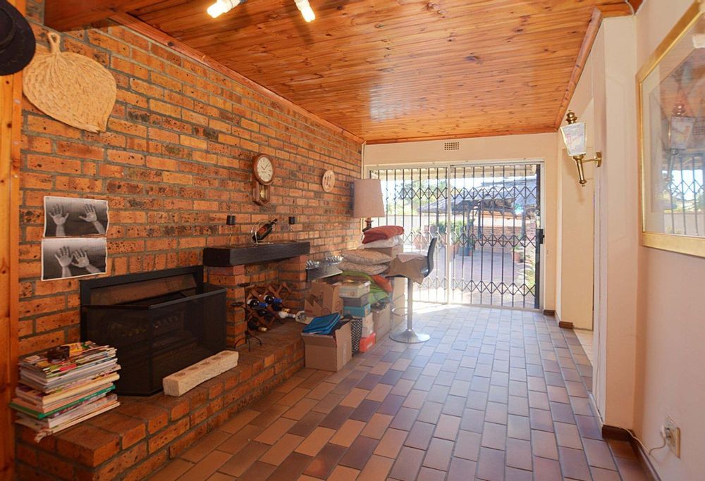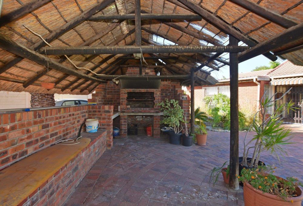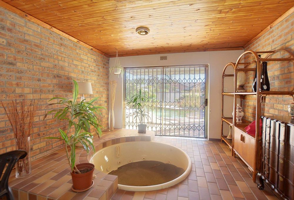 The master bedroom is a luxurious retreat with an en-suite bathroom, walk-in closets, a jacuzzi, sliding doors opening to the swimming pool, and an outdoor Lapa and braai area. The property includes a single lock-up garage and two tandem parking spaces in front of the garage. Surrounded by walls on all four sides, the property is further secured with electric fencing, additional security lights, and beams strategically placed around the premises.