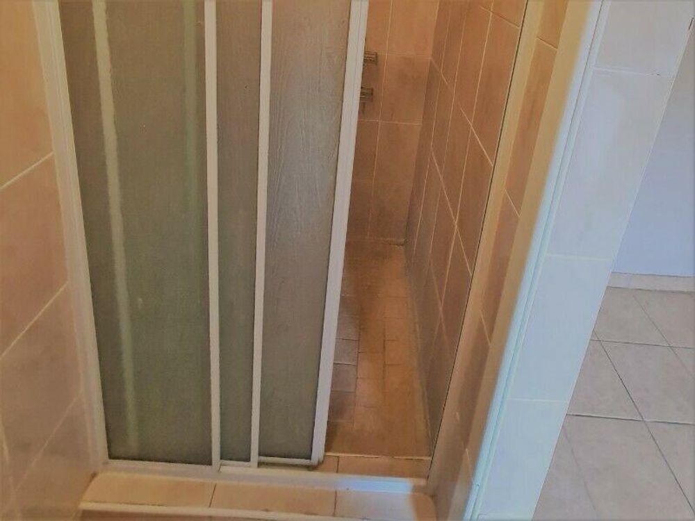 The outside bachelor flat has a kitchen and a tiled lounge area, a bathroom with a shower toilet and basin and one bedroom.